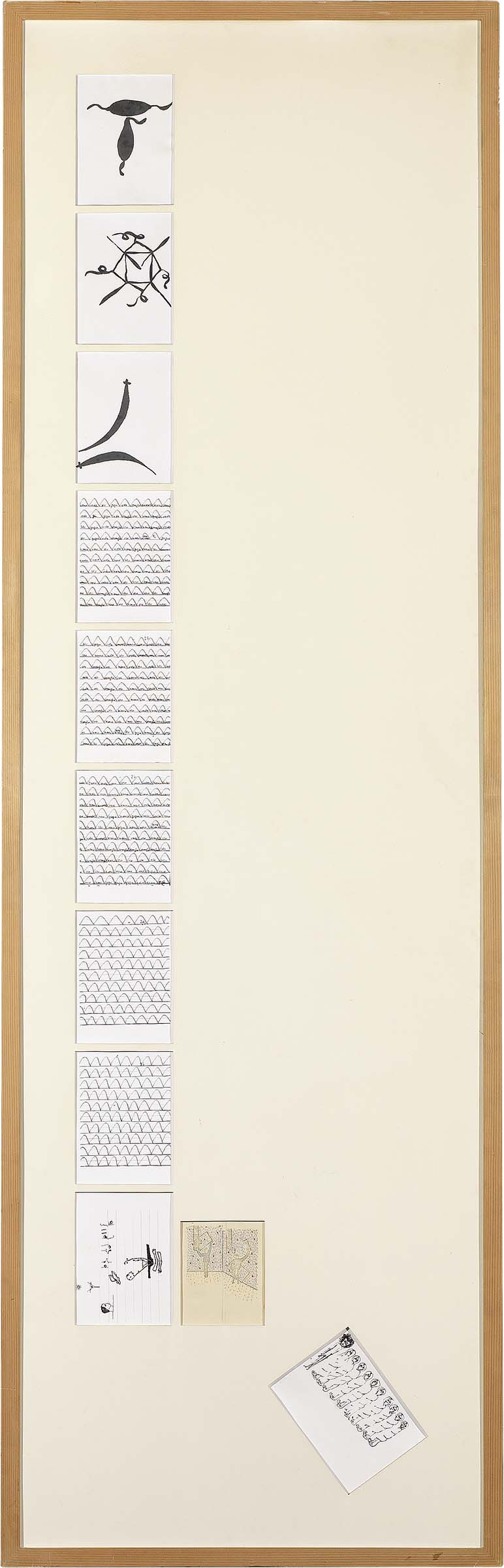 Francesco Clemente Napoli 1952 Colonna, 1974 Fotografie e tecnica mista su carta, cm. 270x86,5 (con cornice) Scritta, data, firma e titolo al verso sul disegno: Questo lavoro è costituito / di 10 fotografie e un disegno non / divisibili, 1974, Francesco Clemente / il titolo è "colonna".