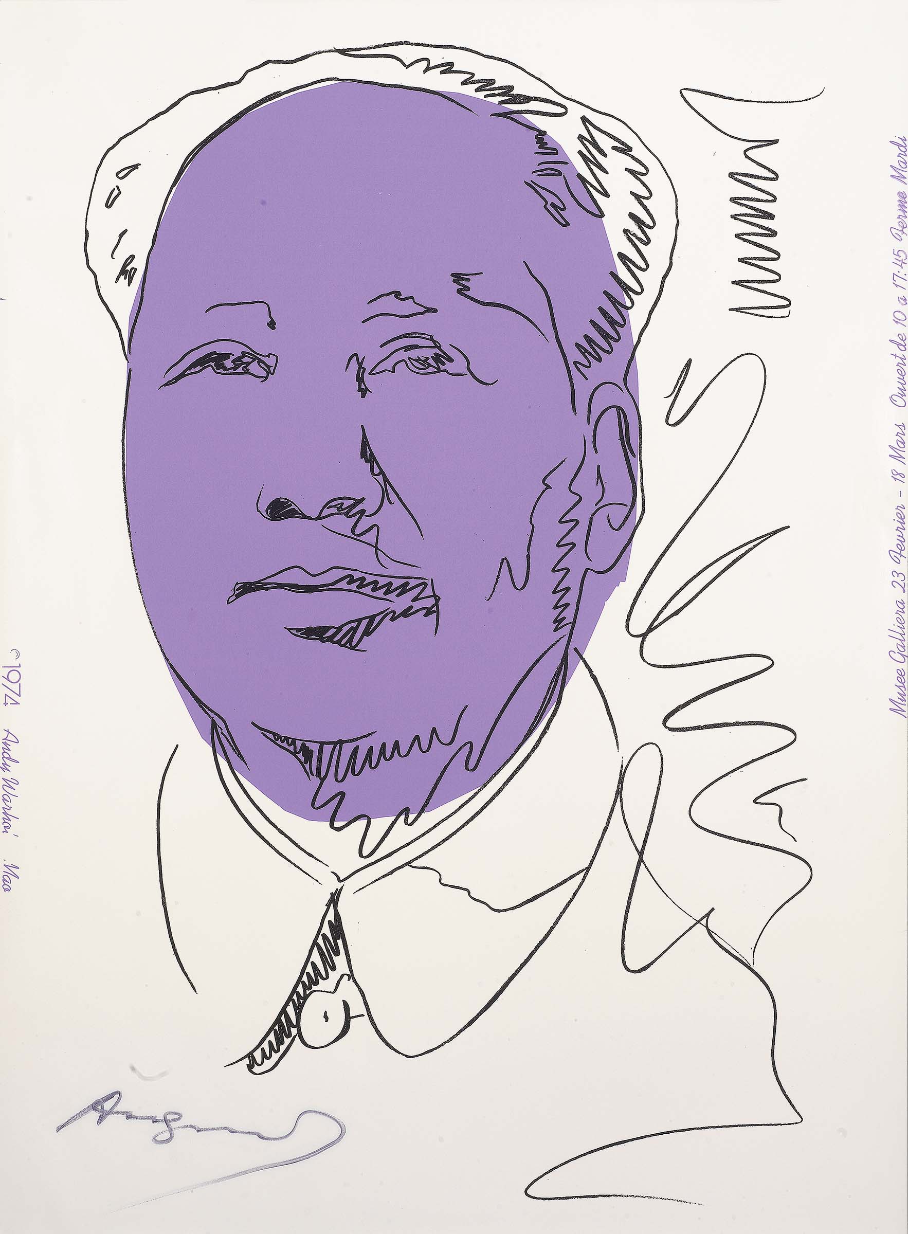 Andy Warhol Pittsburgh 1928 - New York 1987 Mao Wallpaper, 1974 Serigrafia su carta da parati, cm. 102,2x75,4 Firma in basso a sinistra: Andy Warhol; sul margine sinistro scritta: © 1974 Andy Warhol Mao, sul margine destro: Musée Galliera 23 Fevrier - 18 Mars Ouvert de 10 a 17:45 Ferme Mardi. È parte dello sfondo di allestimento realizzato in occasione della mostra Andy Warhol, Parigi, Musée Galliera, 23 febbraio - 18 marzo 1974. Stampatore Bill Miller's Wallpaper Studio, New York, editore Factory Additions, New York. Bibliografia: Andy Warhol, a retrospective, The Museum of Modern Art, New York 1989, p. 332, n. 346; David Bourdon, Warhol, Harry N. Abrams, Publishers, New York 1989, p. 319, n. 248; Frayda Feldman, Jörg Schellmann, Claudia Defendi, Andy Warhol Prints. A catalogue raisonné 1962-1987. Fourth edition revised and expanded, Feldman & Schellmann, New York, 2003, p. 89, n. II.125A.