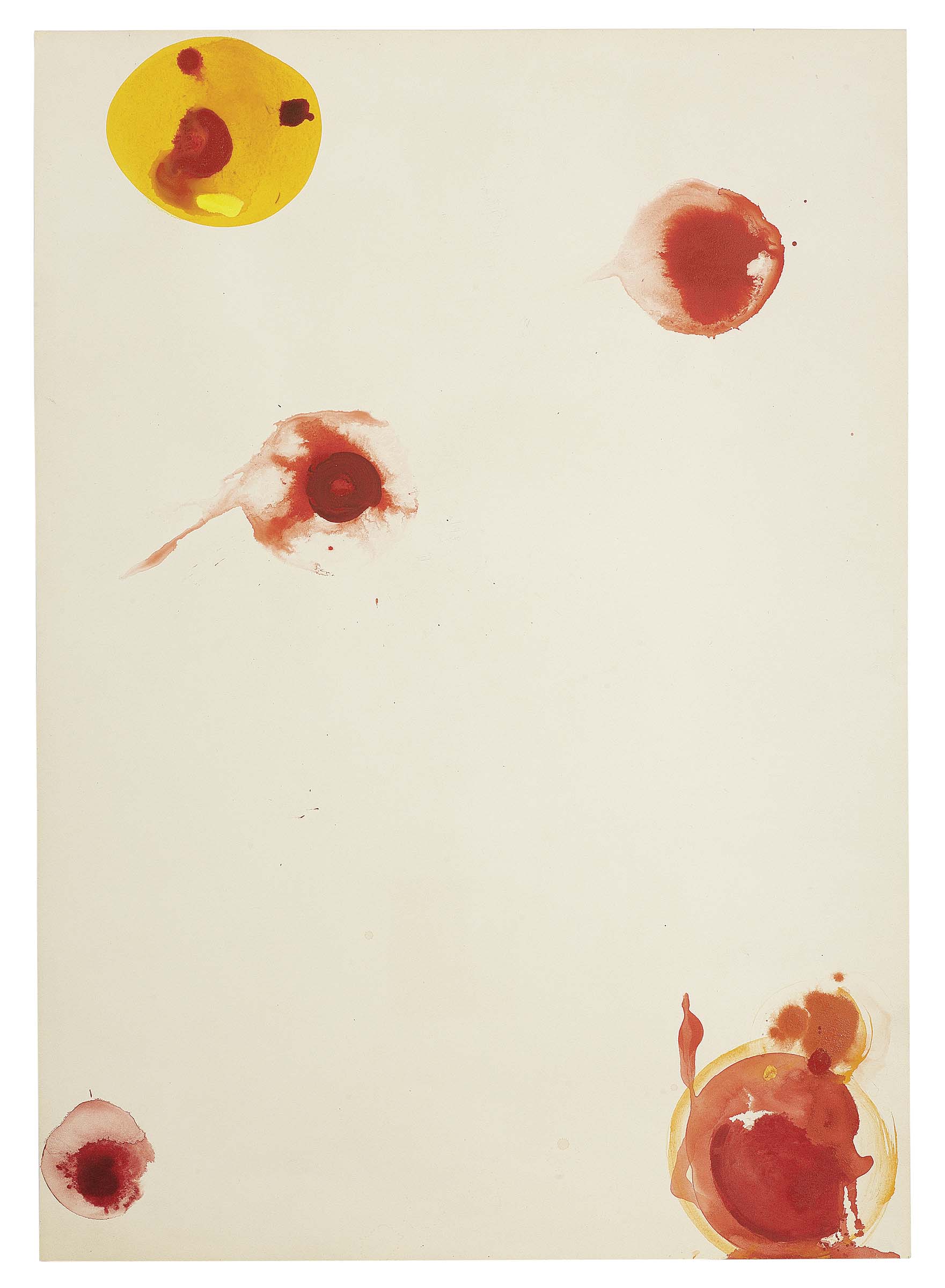 Sam Francis San Mateo 1923 - Santa Monica 1994 Senza titolo, 1960 ca. Acrilico su carta, cm. 82x57,8 Al verso: SI-180R / SF60-1286: firma a timbro Sam Francis: timbro The Sam Francis Estate: sigla Del 2422. Certificato su foto The Sam Francis Estate, Venice, con n. SF60-1286 e sigla Del 2422. L'opera sarà inserita all'interno del catalogo ragionato delle opere su carta dell'artista, di prossima pubblicazione.