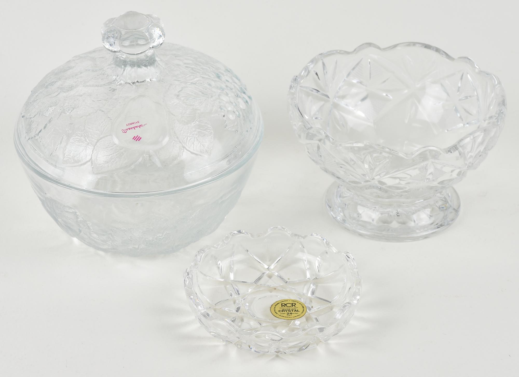 LOTTO DI 3 OGGETTI IN VETRO E CRISTALLO