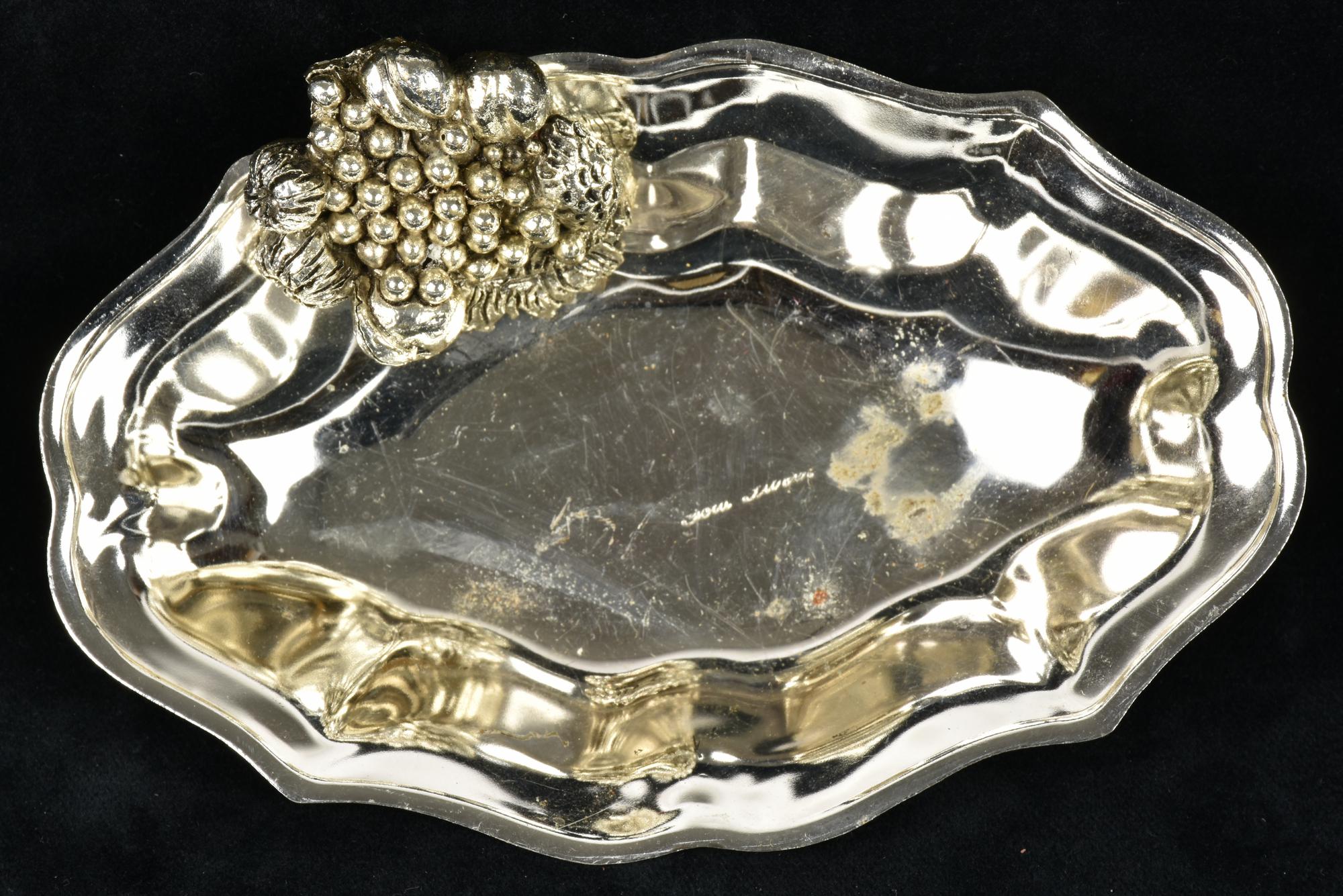 SVUOTATASCHE in metallo argentato con decorazione a forma di cesto di frutta...