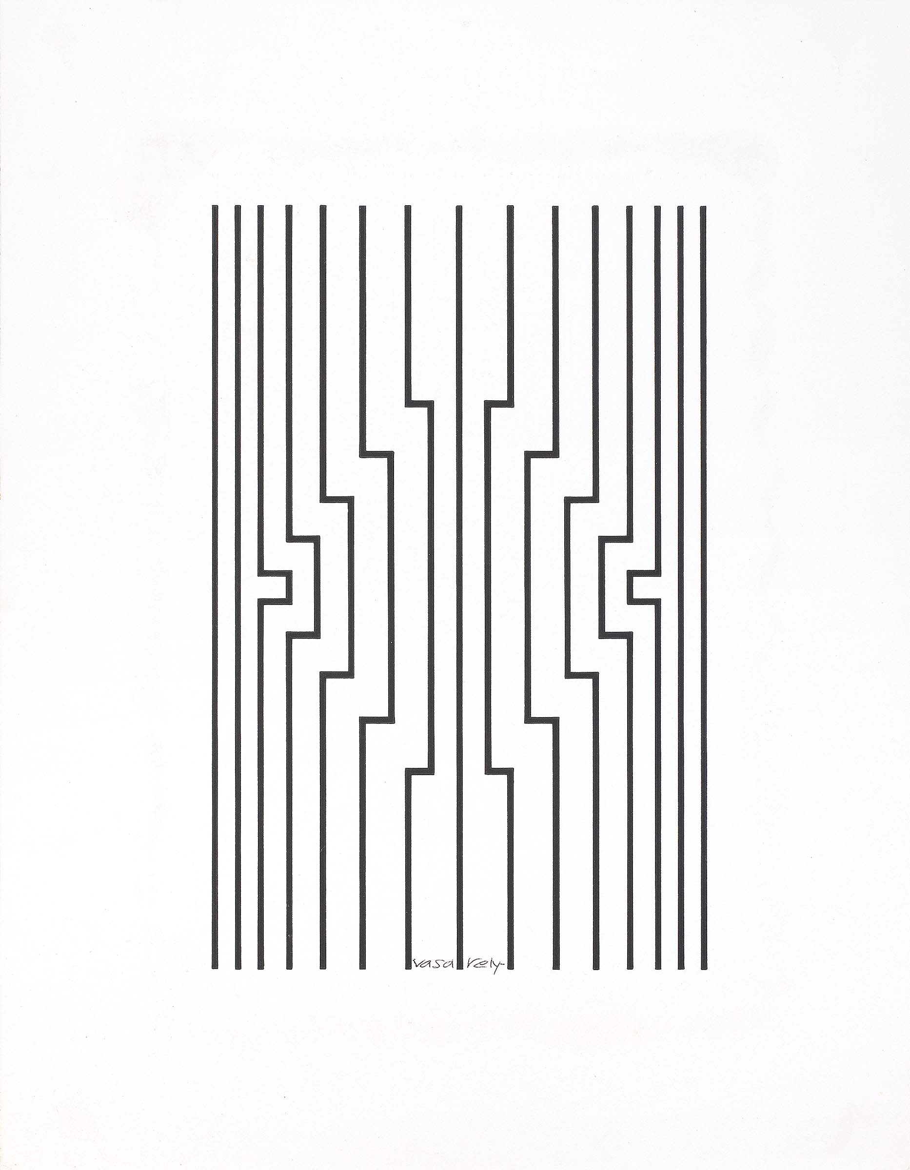Victor Vasarely Pecs 1906 - Parigi 1997 Senza titolo Inchiostro su carta, cm. 41,7x32,5 Firma in basso al centro: Vasarely. Opera in fase di archiviazione.