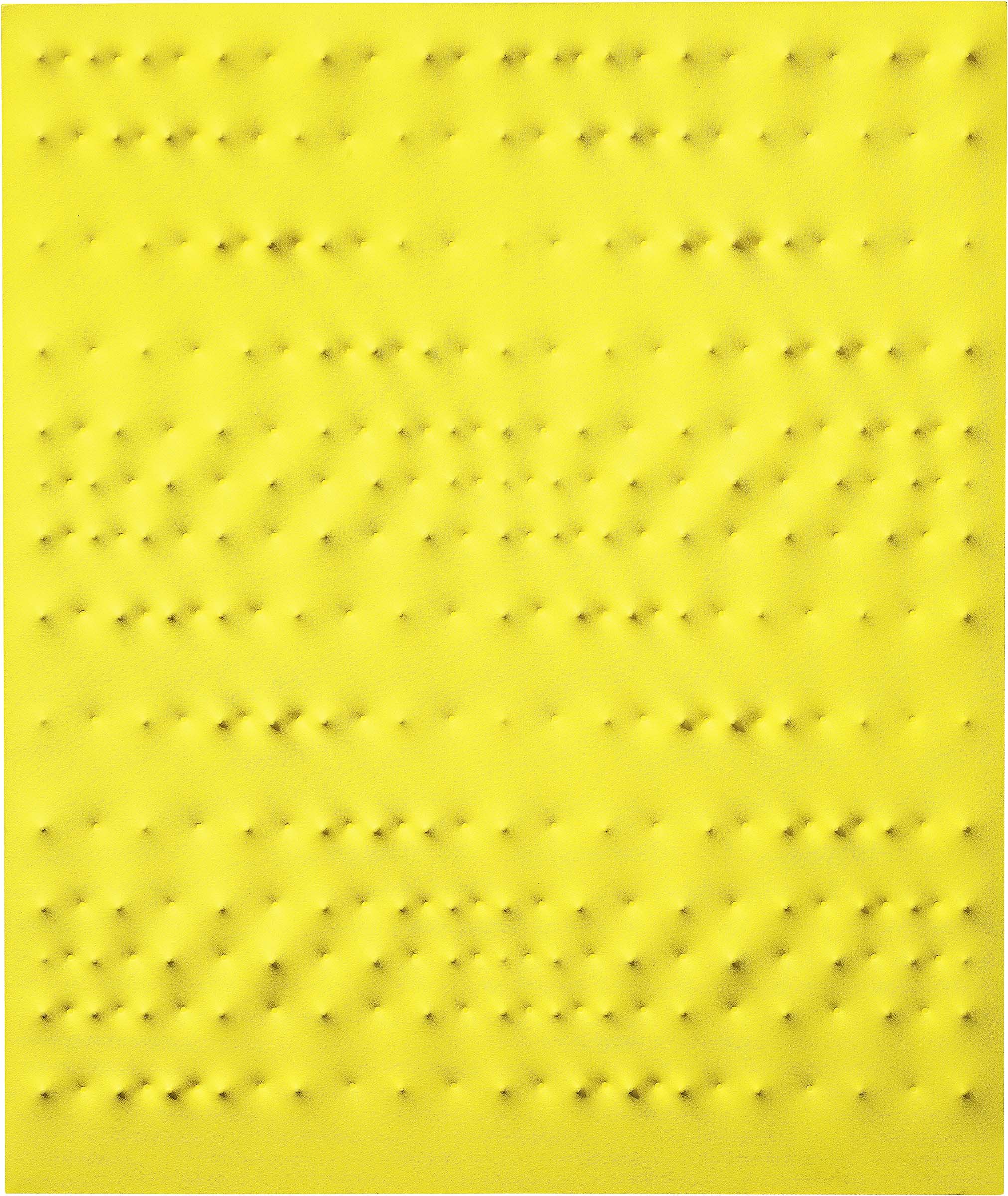Enrico Castellani Castelmassa (Ro) 1930 Superficie gialla, 1990 Acrilico su tela, cm. 120x100 Firma, titolo e data al verso sul risvolto della tela: - Enrico Castellani - Superficie gialla - 1990; sul telaio: etichetta con timbro Netta Vespignani / Galleria d'Arte, Roma. Storia: Collezione privata, Ferrara; Collezione privata Certificato su foto Archivio Castellani, con n. 90-039. Bibliografia: Enrico Castellani. Catalogo ragionato. Tomo secondo. Opere 1955-2005, Skira, Milano, 2012, p. 508, n. 697.