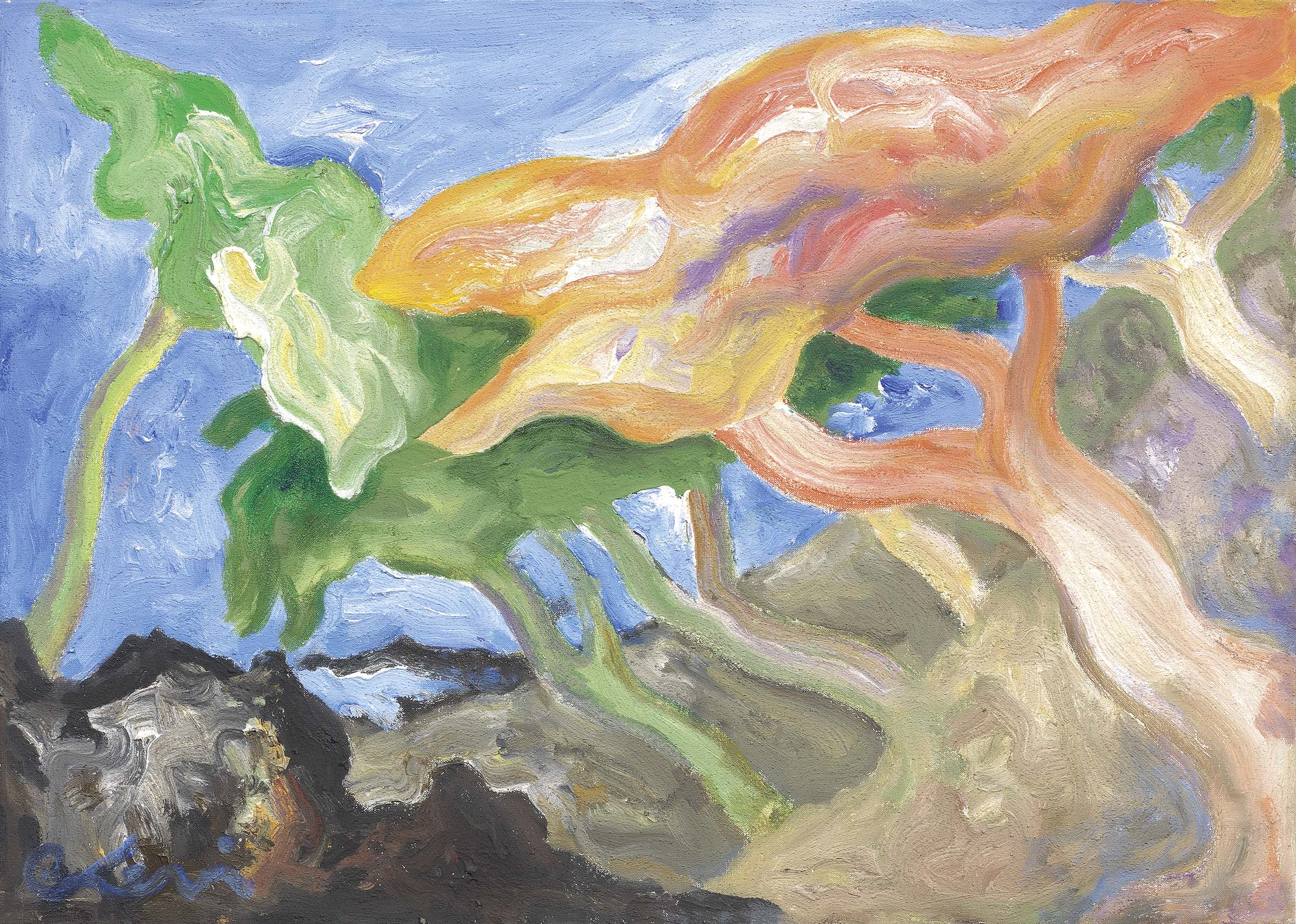 Carlo Levi Torino 1902 - Roma 1975 Paesaggio Olio su tela, cm. 50x70 Firma in basso a sinistra: C. Levi; firma e scritta al verso sulla tela: C. Levi / 701222C/212: etichetta Galleria d'Arte Lisi, Roma.