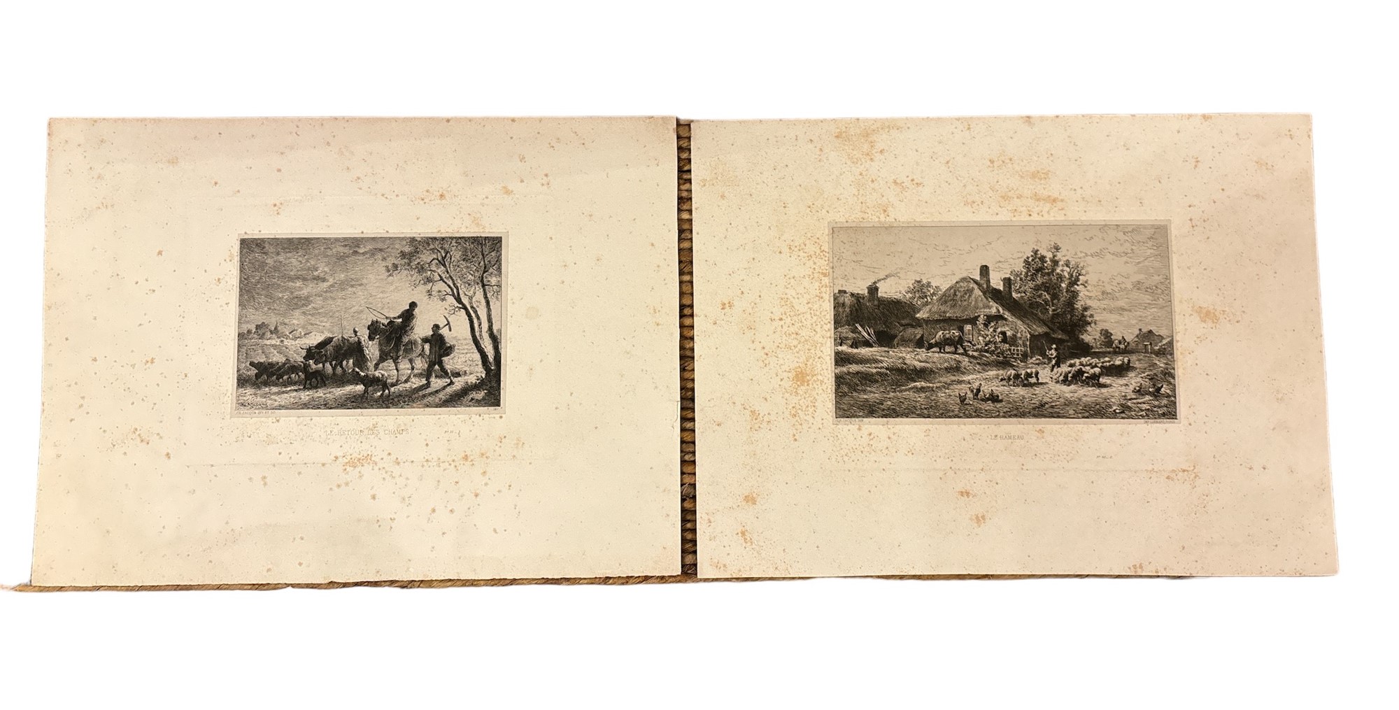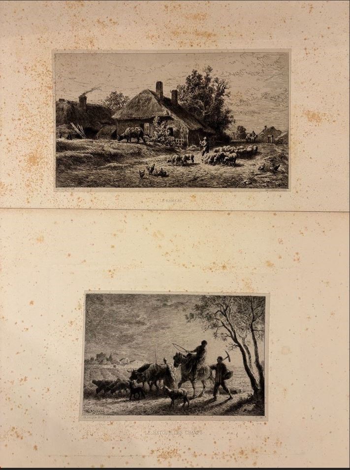 Charles Emile Jacque (1813 - 1894) Le Hameau; Le Retour Des Champs incisione...