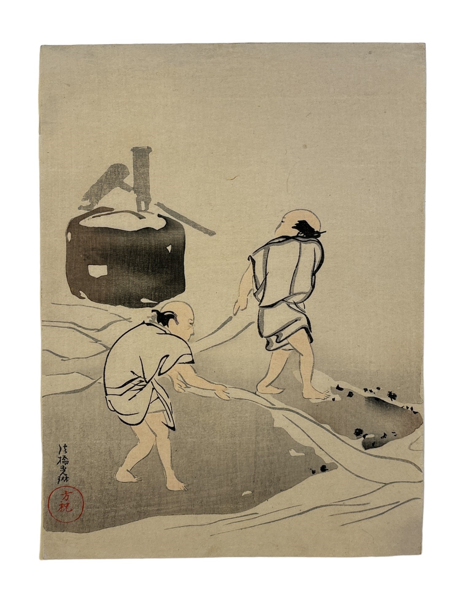 Ogata Korin (1658 - 1716) Coppia di pescatori Fine XIX secolo xilografia...