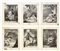 Precedentemente attaccate a due a due con vecchio adesivo sui quattro angoli a passe-partout. Qualche segno di vecchio adesivo. Difetti.