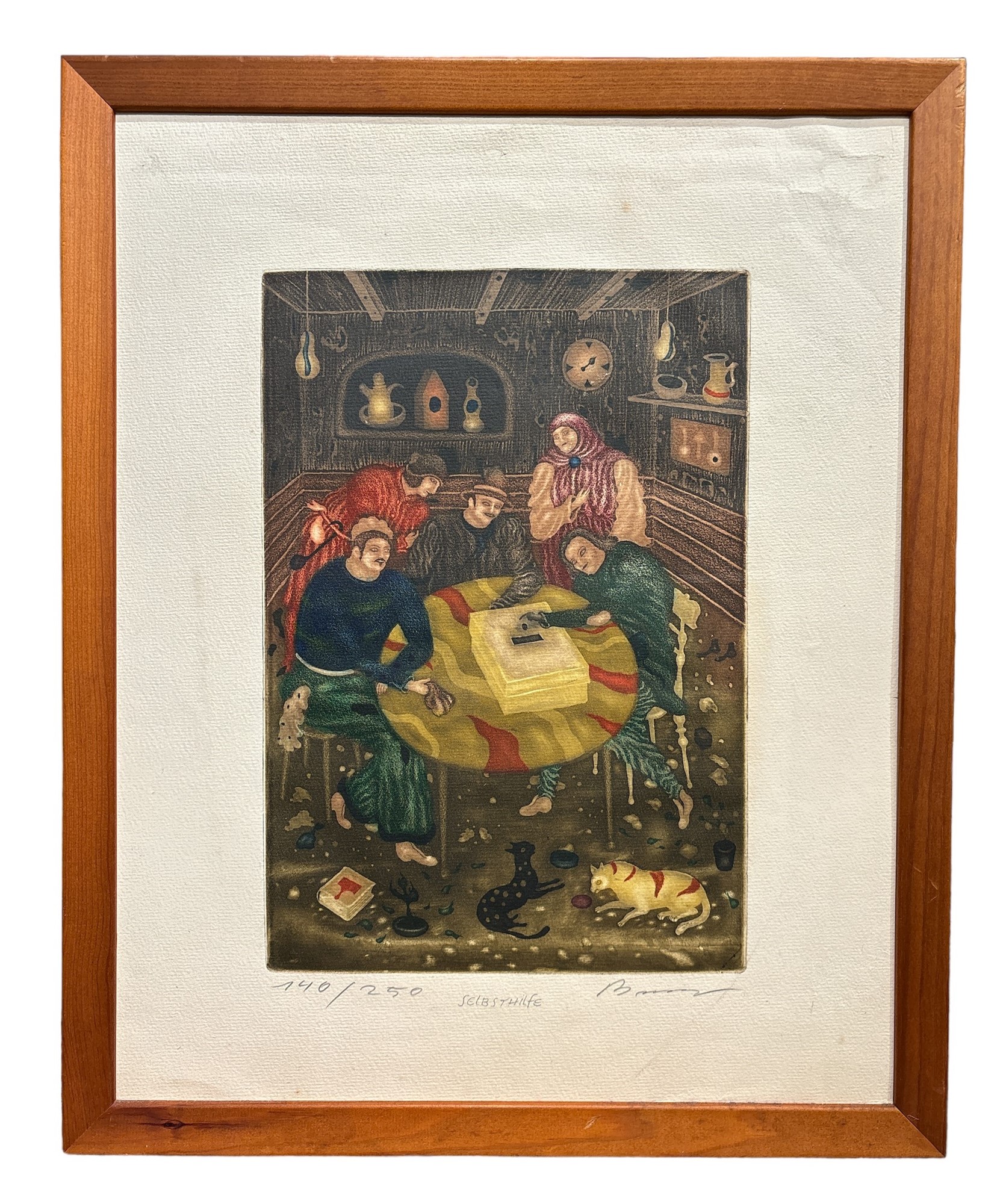 Arik Brauer (1929 - 2021) Selbsthilfe 1977 - 1978 acquatinta a colori 34,5 x...