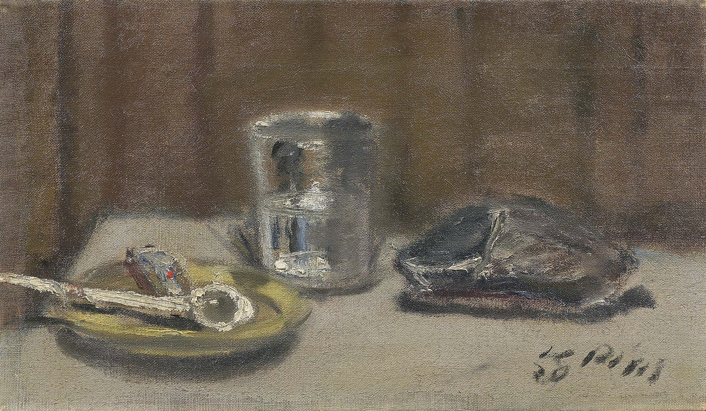 Filippo de Pisis Ferrara 1896 - Milano 1956 Natura morta con pipa, 1930 Olio su tela, cm. 28,4x48 Firma e data in basso a destra: de Pisis / 30. Al verso sul telaio scritta: Per autentica / Francesco Pospisil / Venezia: tre timbri Francesco Pospisil: etichetta Galleria del Girasole, Udine, con n. I659. Storia: Collezione F. Pospisil, Venezia; Collezione privata Certificato Associazione per Filippo de Pisis, Milano, 1 aprile 2014, con n. 04346.