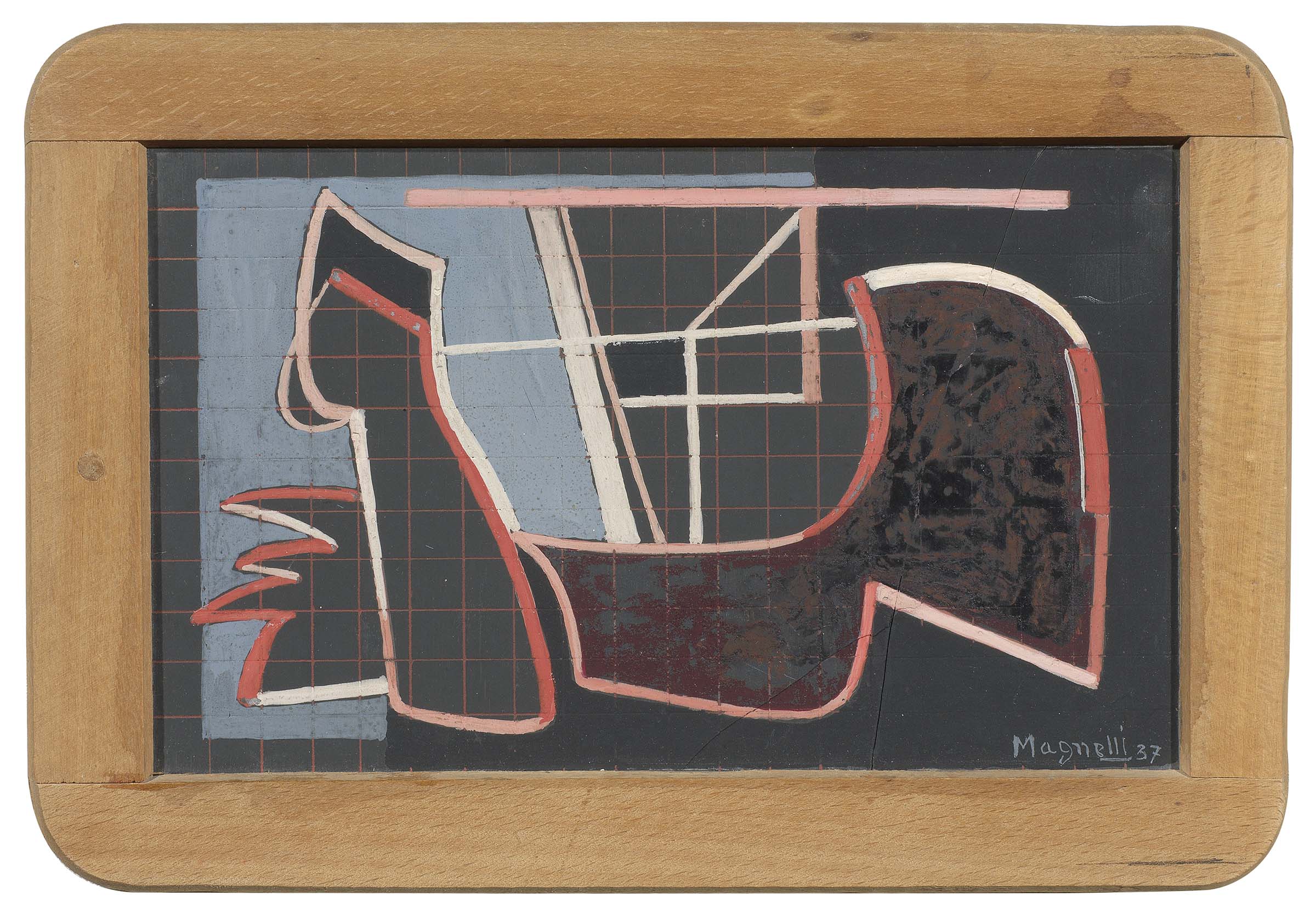 Alberto Magnelli Firenze 1888 - Meudon 1971 Senza titolo, 1937 Tecnica mista su ardesia, cm. 16,7x24,5 Firma e data in basso a destra: Magnelli 37. Al verso, su un cartone di supporto: due timbri Galeria de l'Île de France, Paris. Certificato su foto di Anne Maisonnier, Parigi, 11 ottobre 2012, con n. 12.1011/127. Filatura sul lato destro.