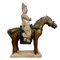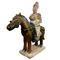 Antica scultura in terracotta, raffigurante cavallo con personaggio cinese.
