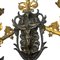 Candelabro in bronzo dorato finemente cisellato, cinque portacandele, braccia basculanti, corpo centrale regolabile in altezza.
