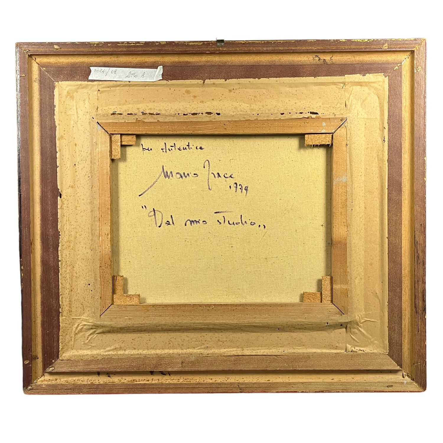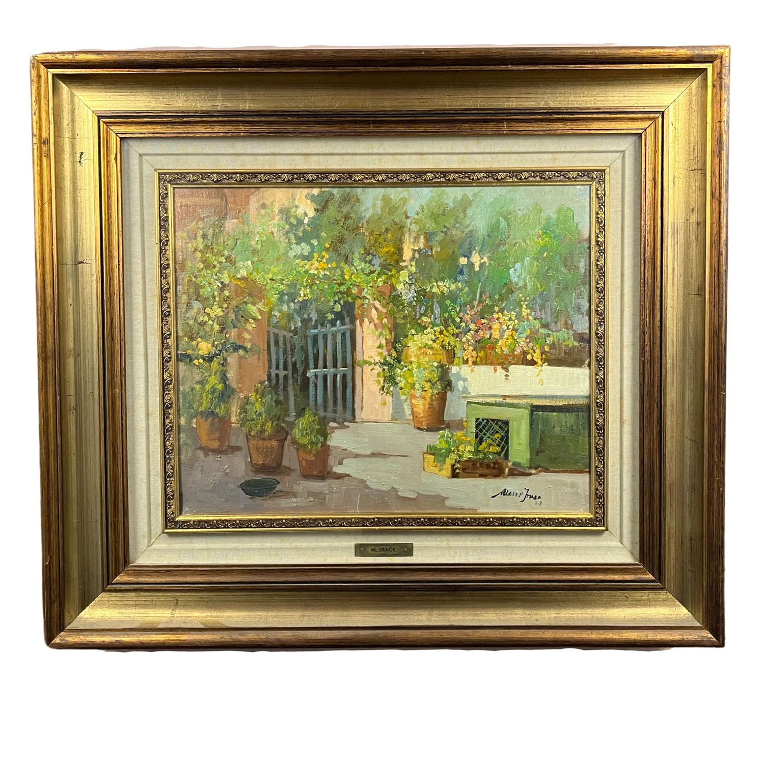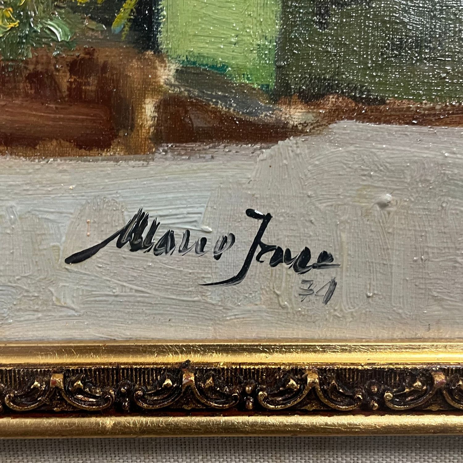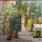 Dipinto olio su tela, periodo XX secolo, raffigurante Esterno di dimora.