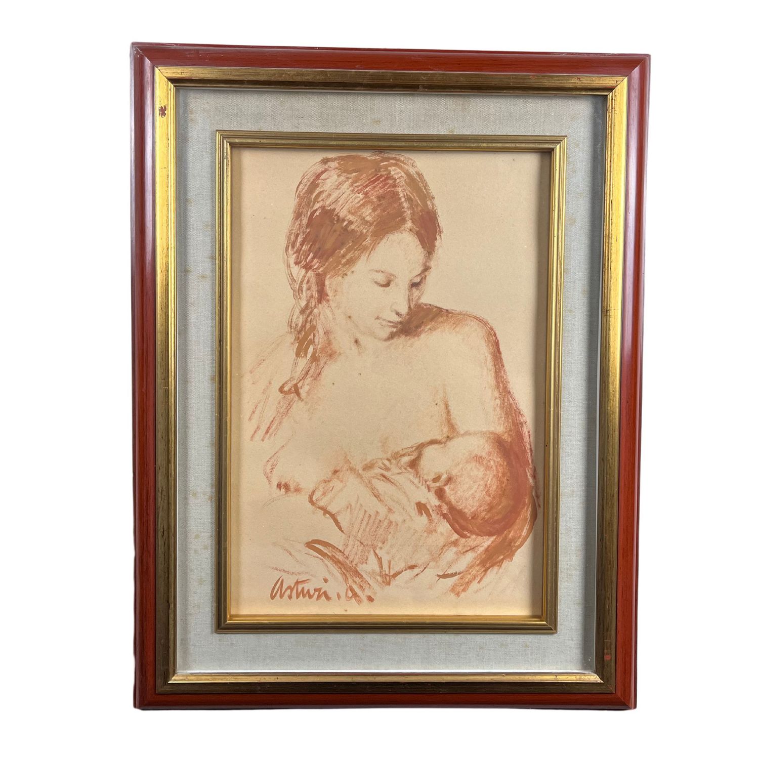 Disegno su cartoncino, periodo XX secolo, raffigurante La Maternità.