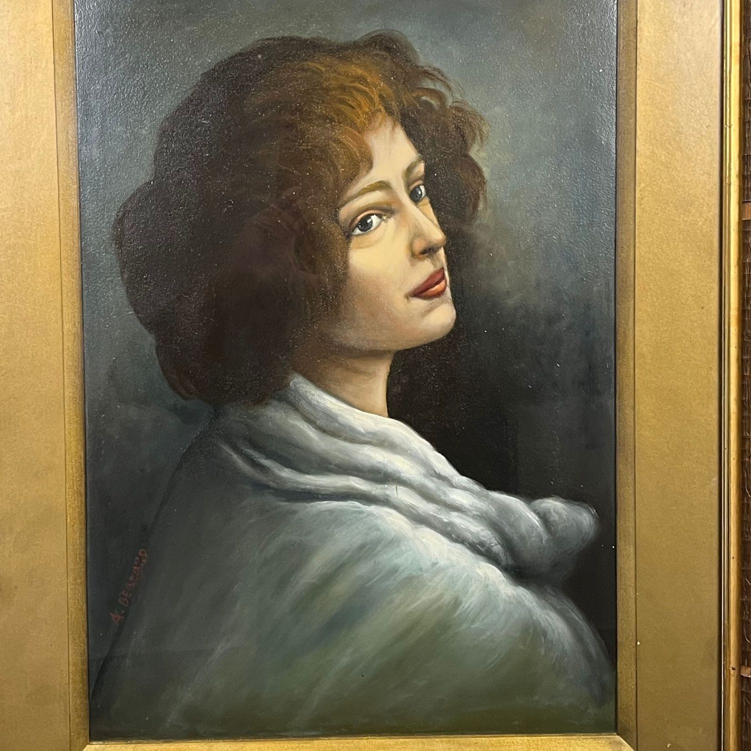 Dipinto olio su cartoncino, periodo XX secolo scuola Europea raffigurante Profilo di donna.