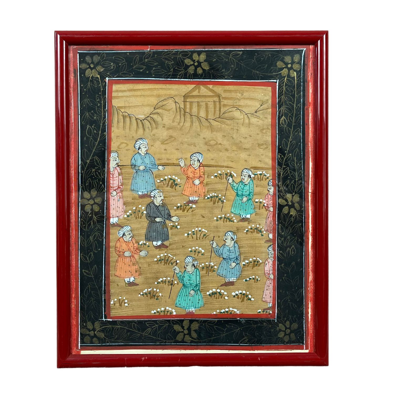 Dipinto su tessuto di area Orientale, periodo XX secolo raffigurante campo di coltivazione.