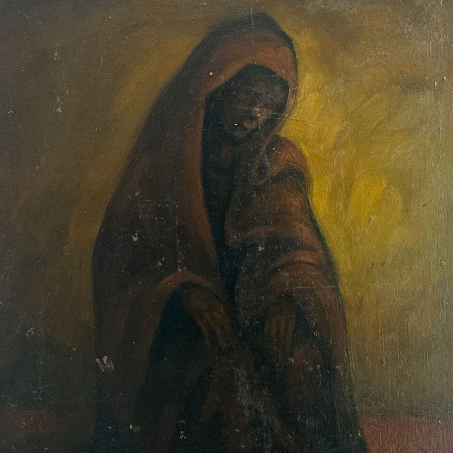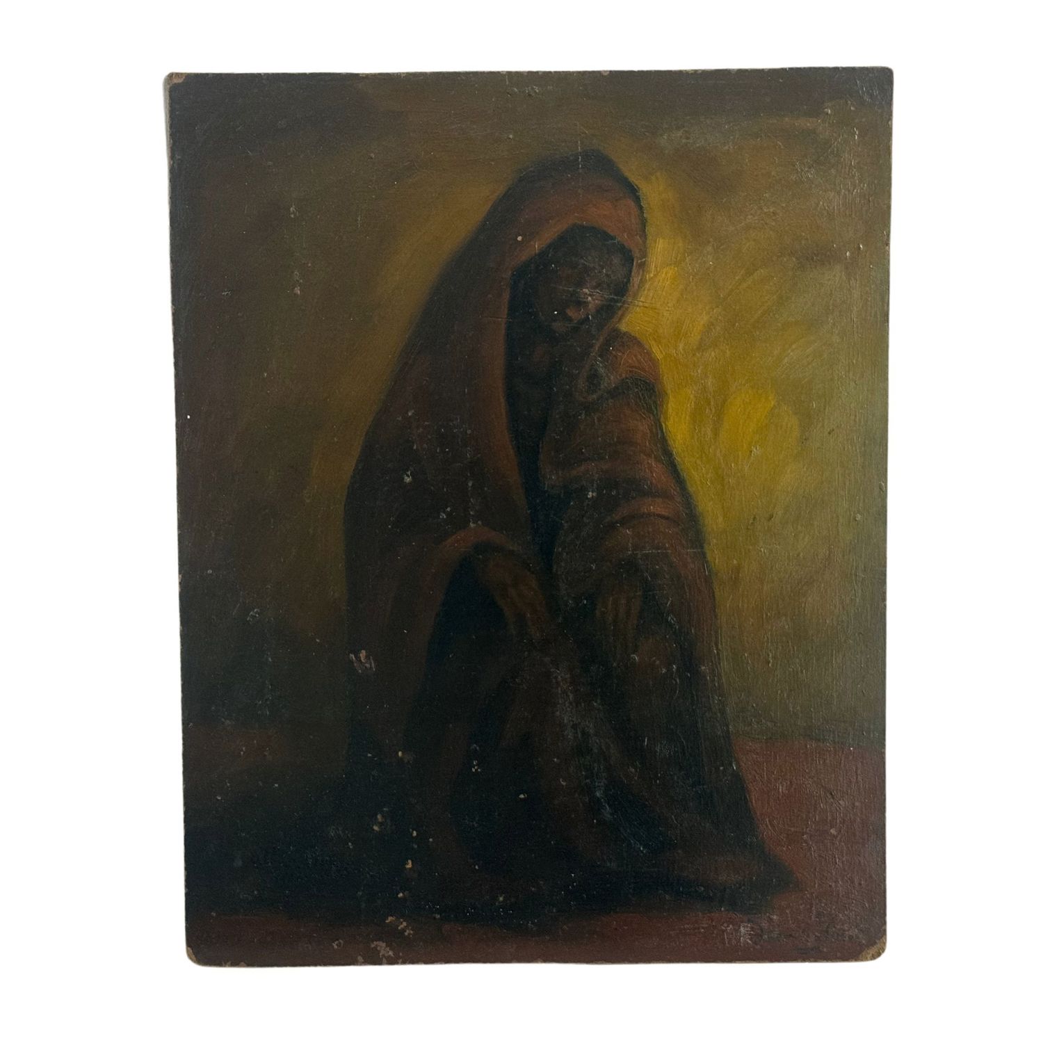 Dipinto olio su pannello, periodo XX secolo scuola Italiana, raffigurante Donna con velo.