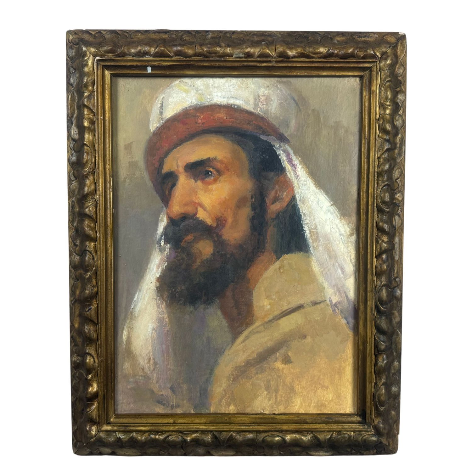 Dipinto olio su tela, periodo XIX/XX secolo scuola Europea, raffigurante Uomo con turbante.