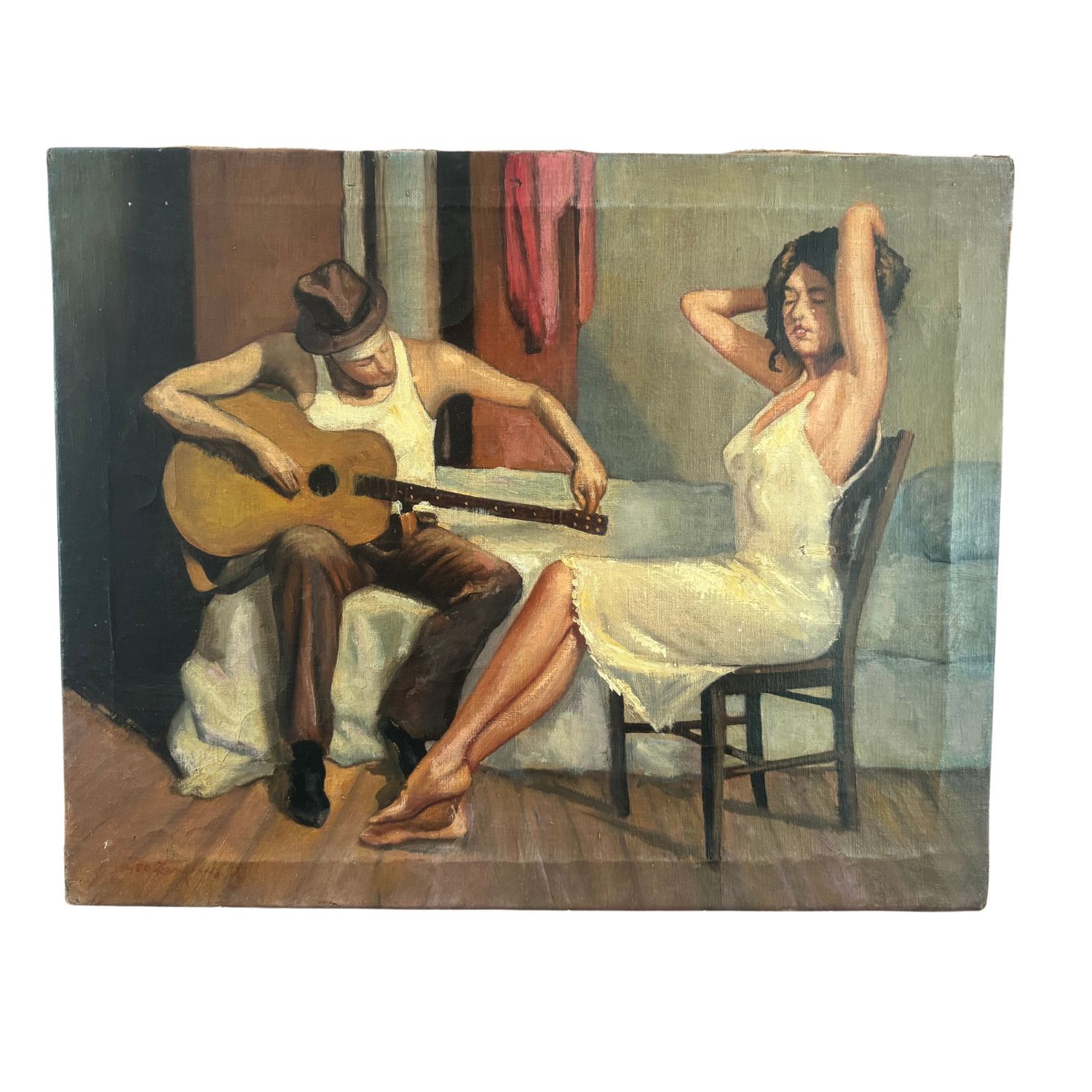 Dipinto olio su tela, periodo XX secolo scuola Italiana, raffigurante Musica Jazz, omaggio a Eric Bowman.