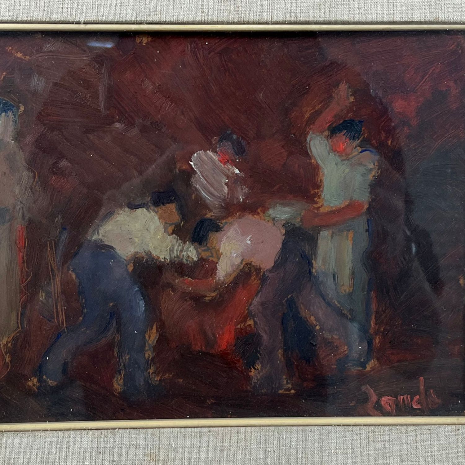 Dipinto olio su pannello, periodo XX secolo raffigurante Personaggi da artista Impressionista.