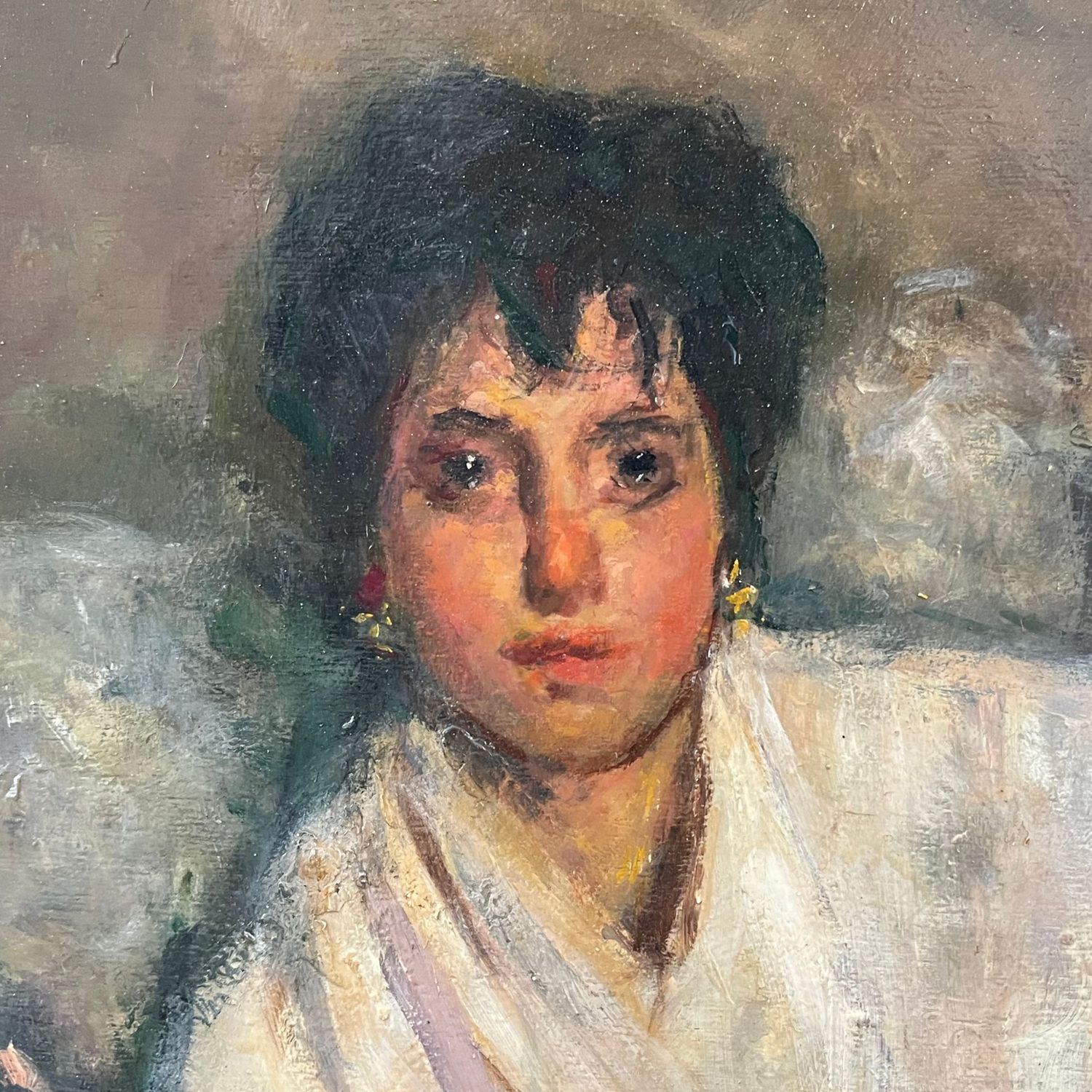 Dipinto olio su tavola, periodo XX secolo raffigurante Ritratto di ragazza.