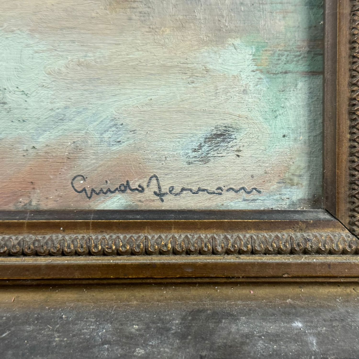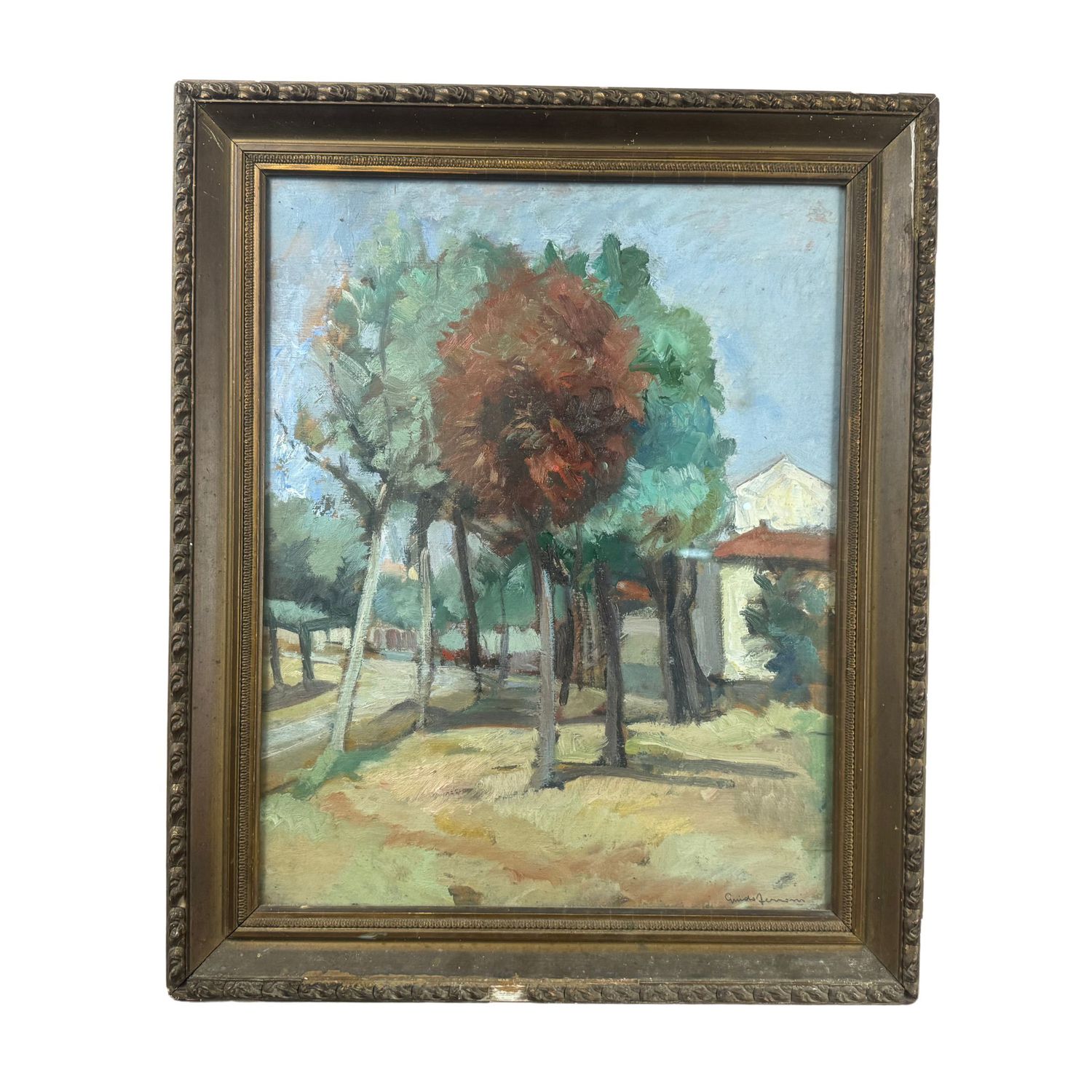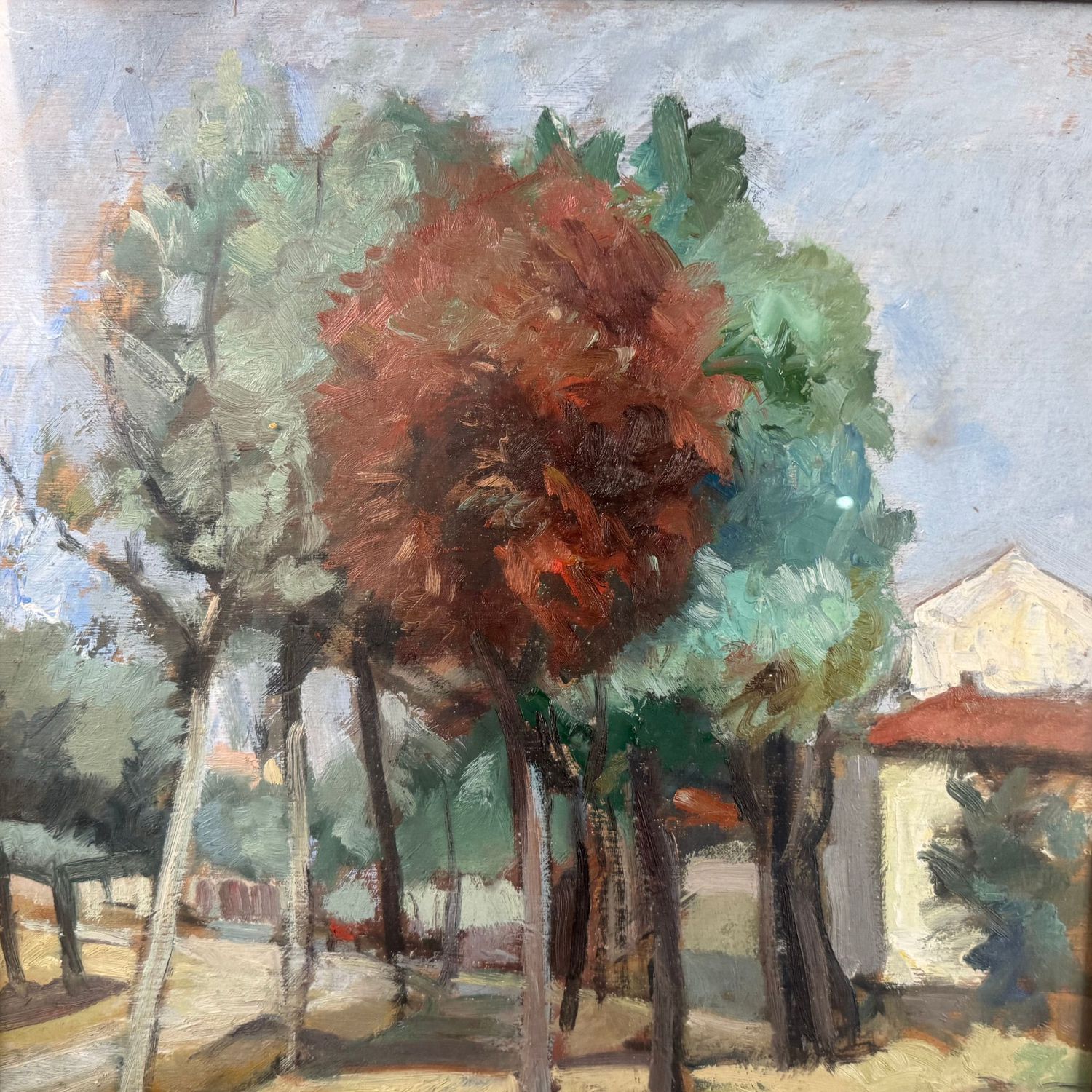 Dipinto olio su pannello, periodo XX secolo scuola Italiana, raffigurante Paesaggio con alberi.