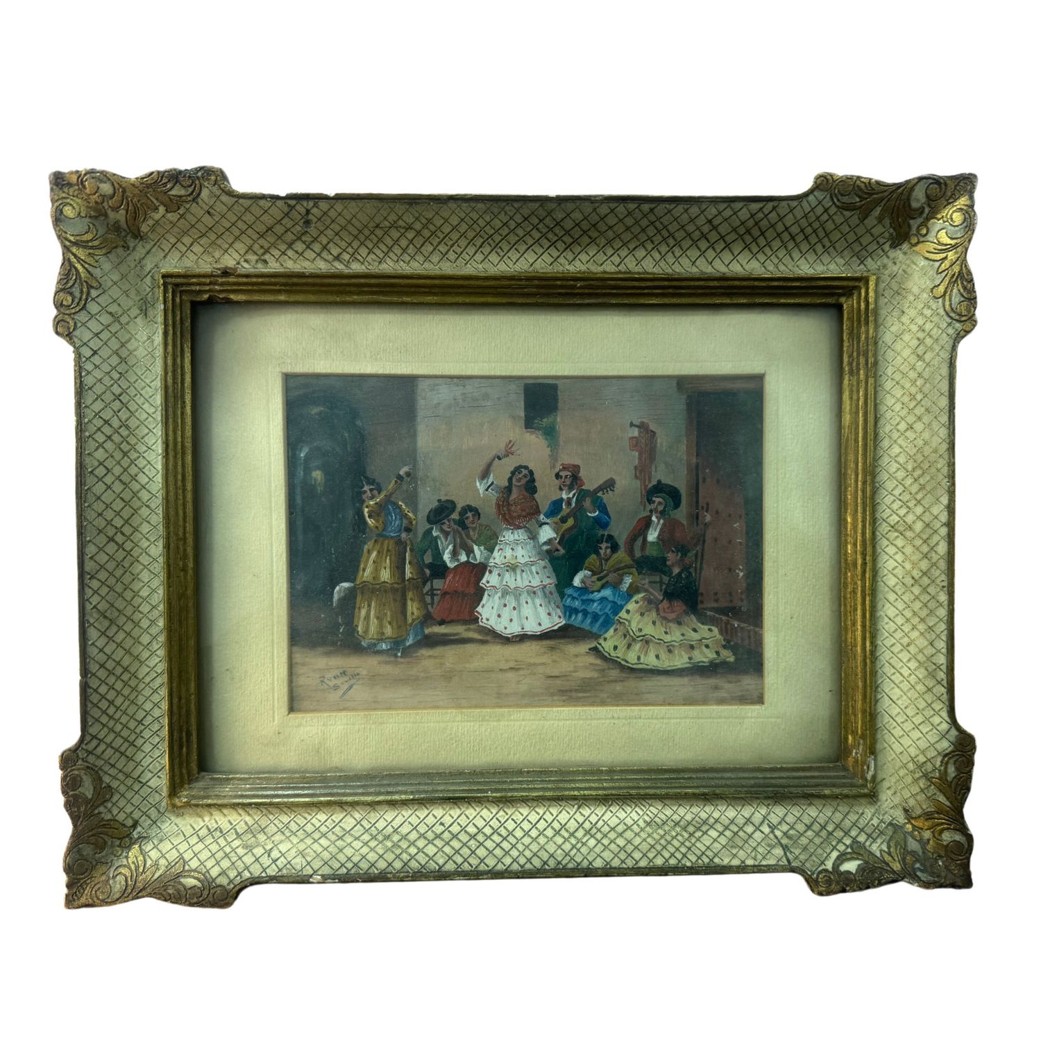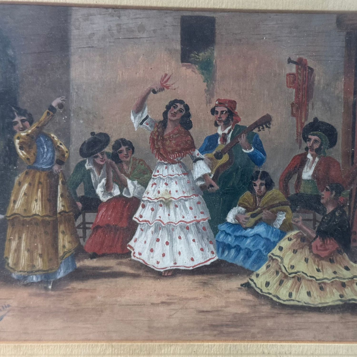 Dipinto olio su tavoletta, periodo XIX/XX secolo scuola Spagnola, raffigurante Danza.