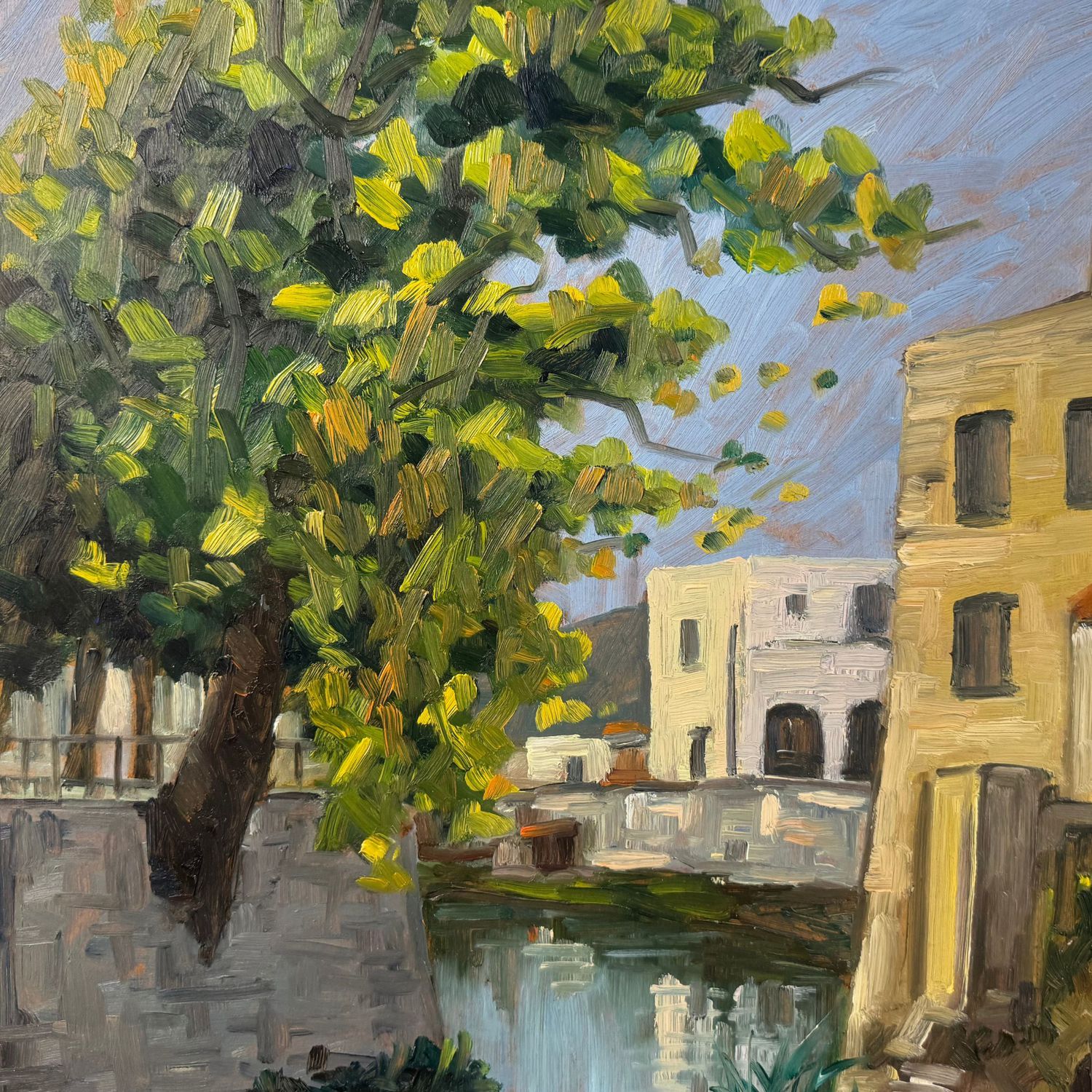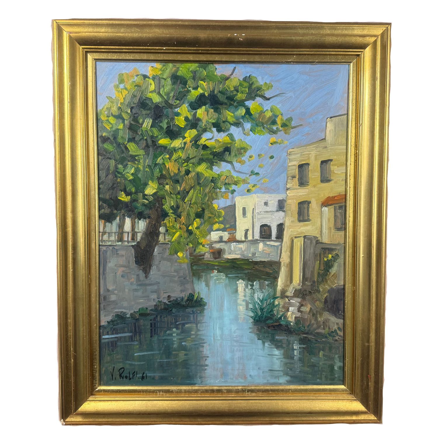 Dipinto olio su pannello, periodo XX secolo scuola Italiana, raffigurante Paesaggio.