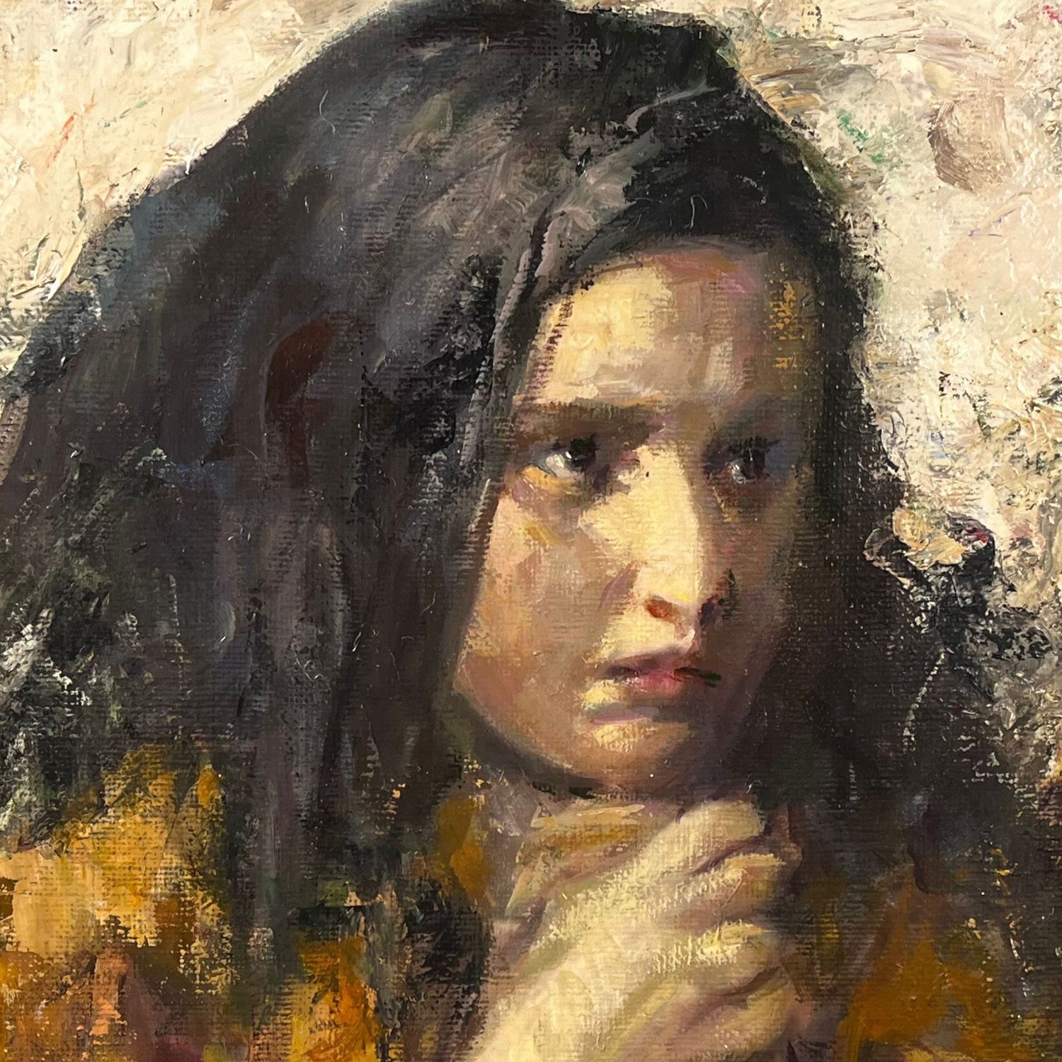 Dipinto olio su tela, periodo 1956 scuola Italiana, raffigurante Ritratto di giovane donna tratta da un'opera di Vincenzo Irolli.