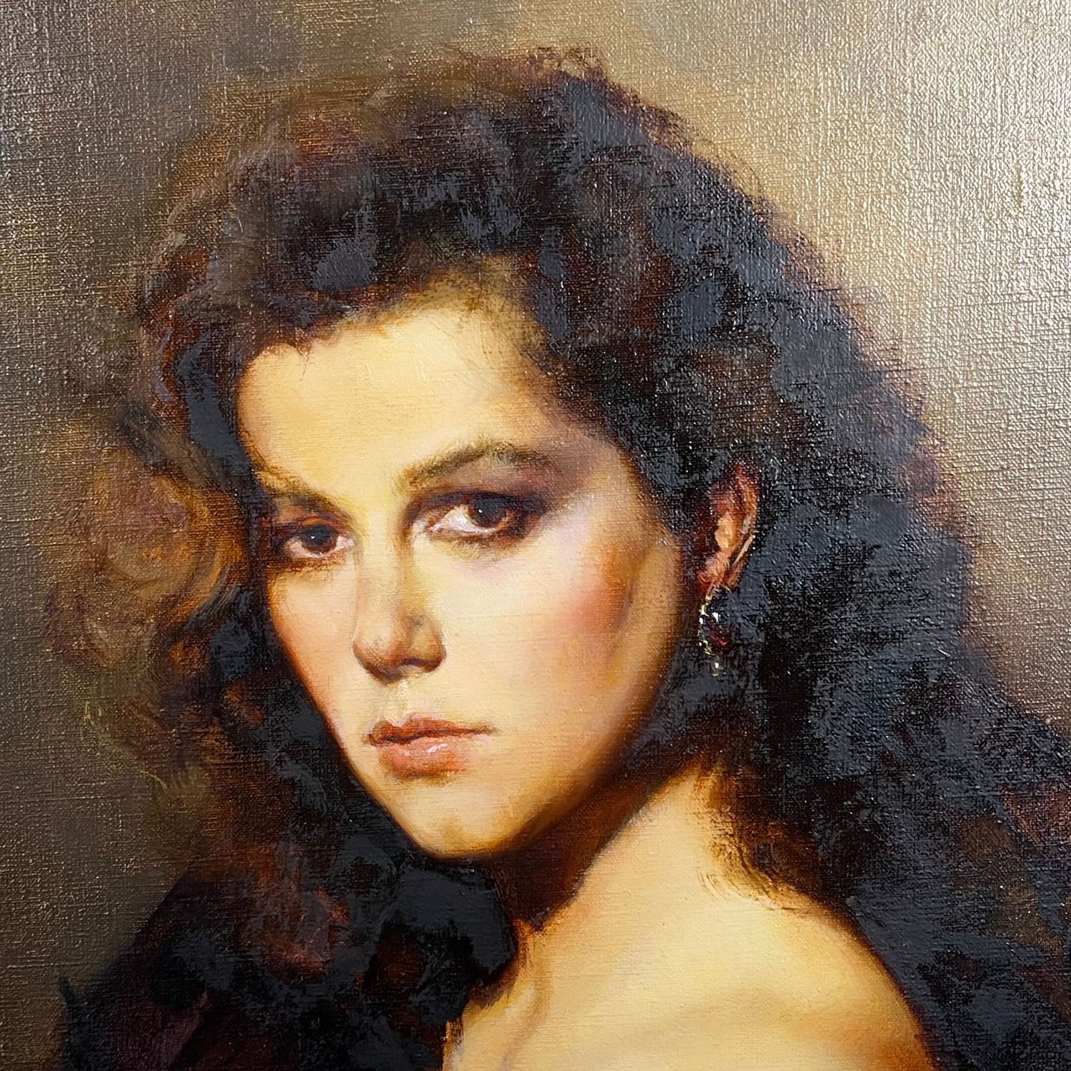 Dipinto olio su tela, periodo XX secolo, raffigurante Elegante Ritratto di donna.