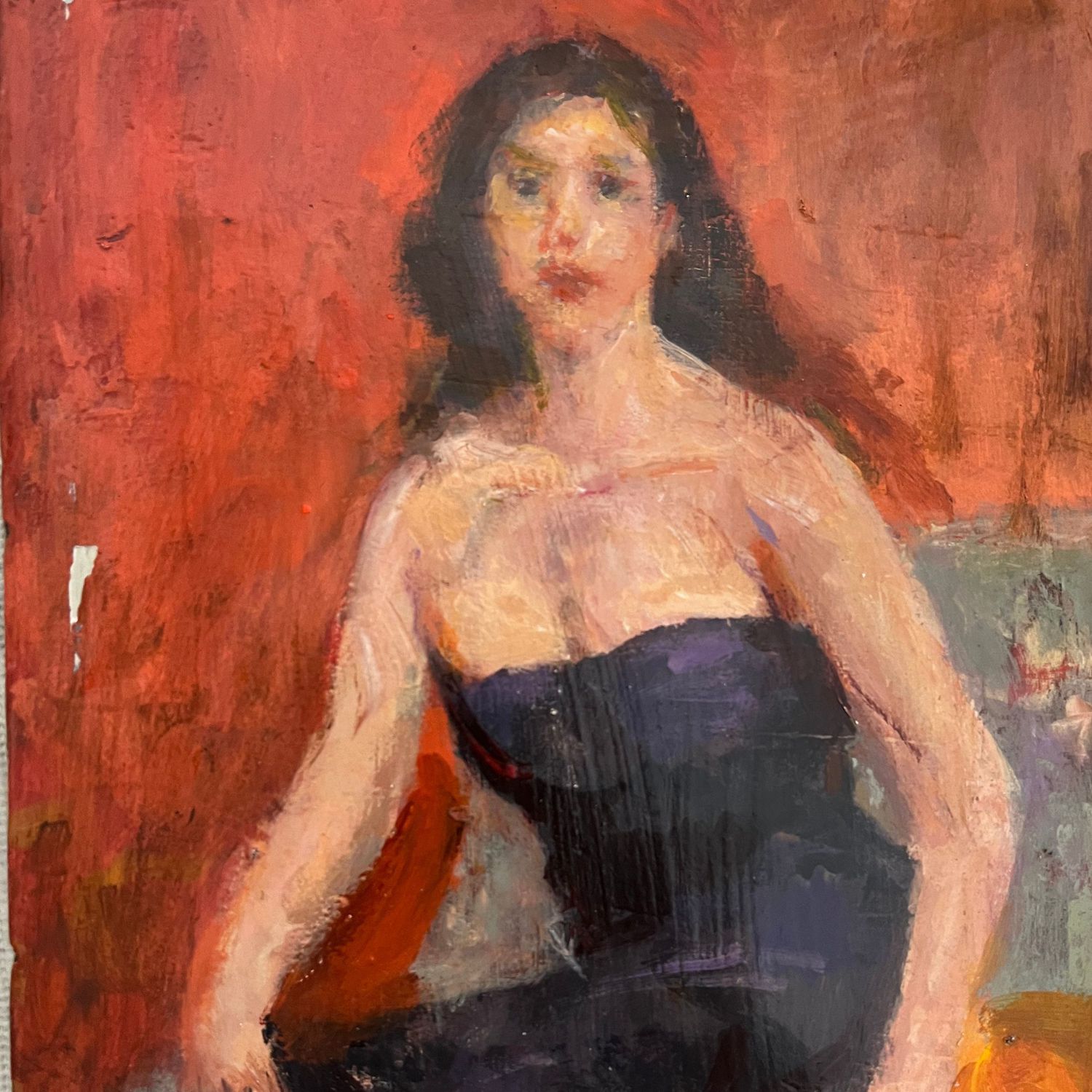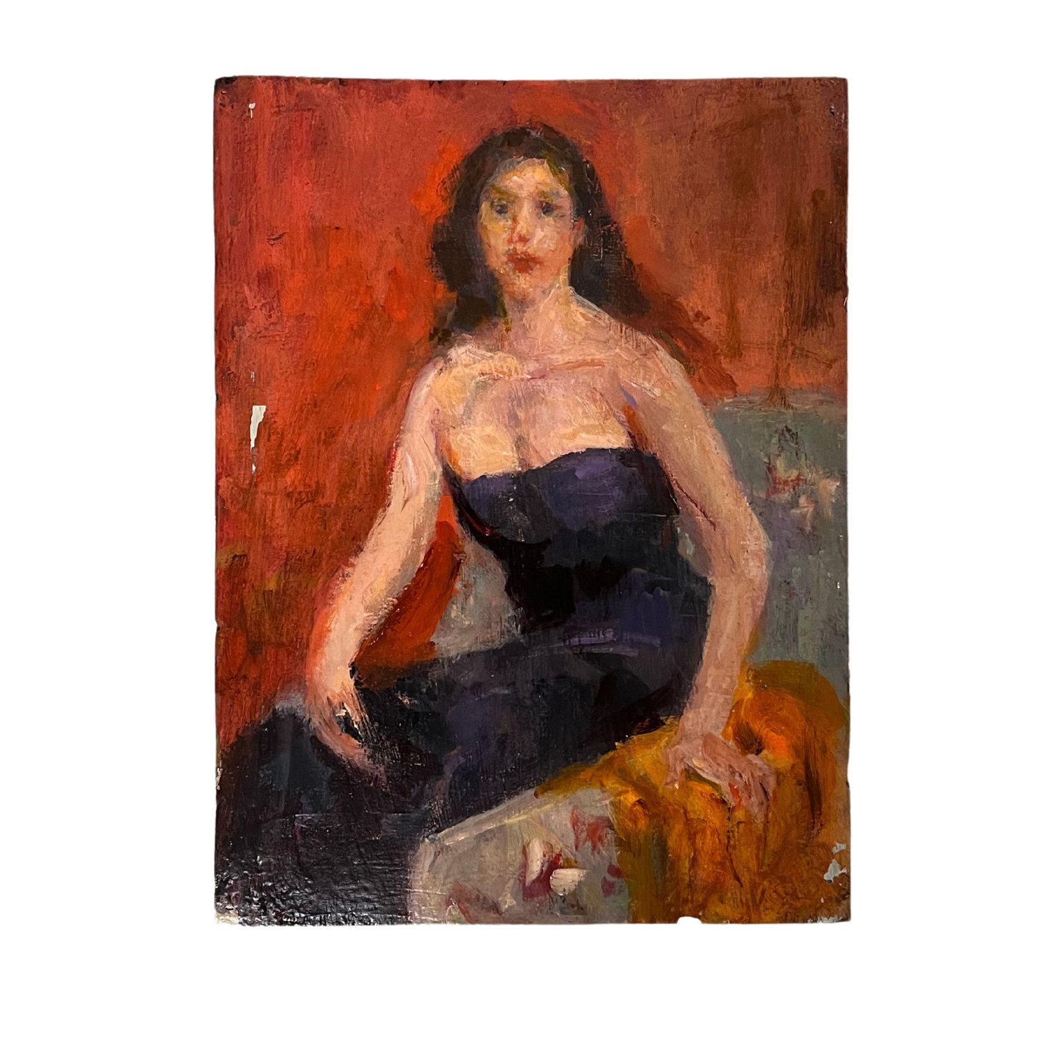 Dipinto olio su pannello, periodo XX secolo scuola Italiana, raffigurante Donna seduta.