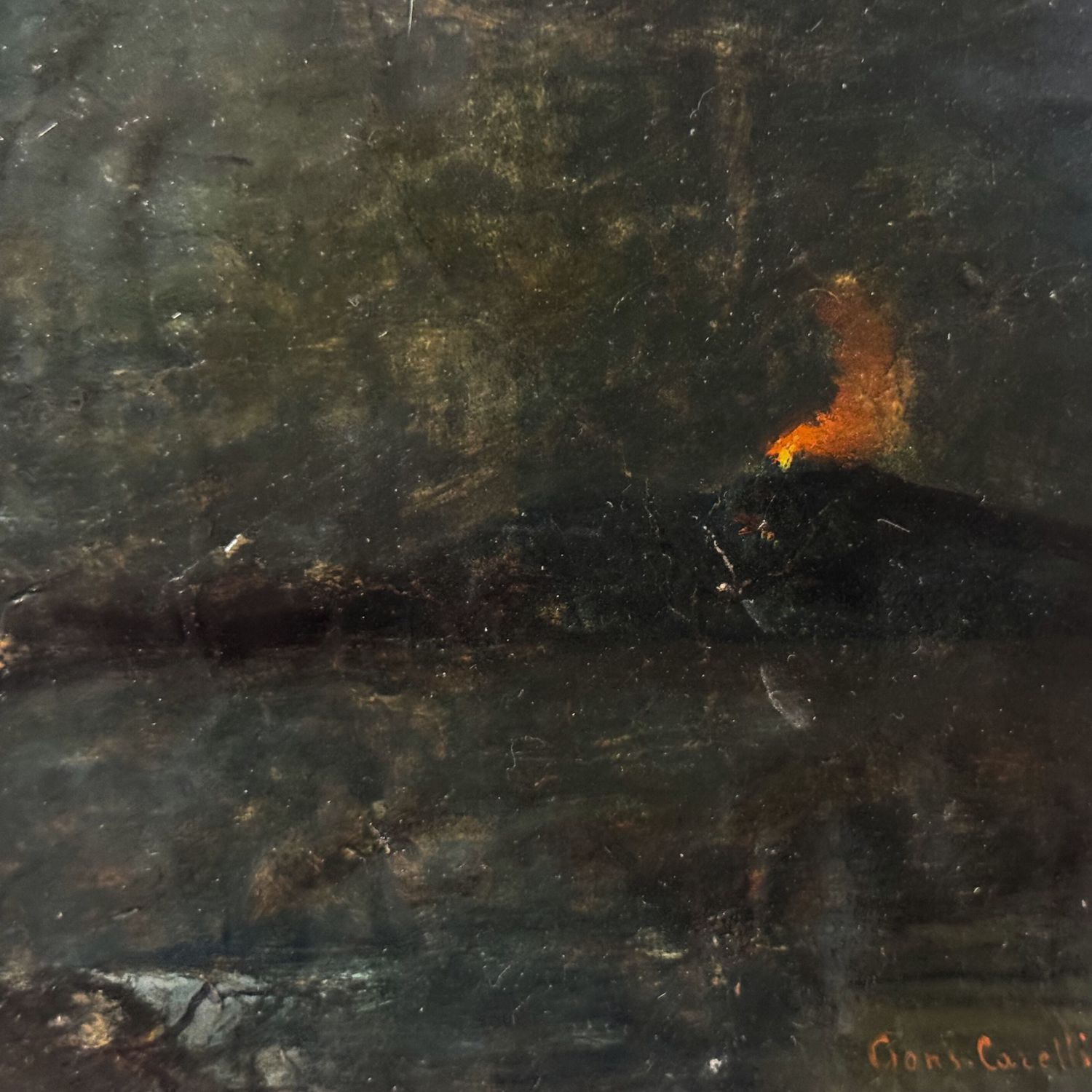 Dipinto olio su tela, periodo XIX secolo, scuola Italiana raffigurante Eruzione del Vesuvio nel 1850.