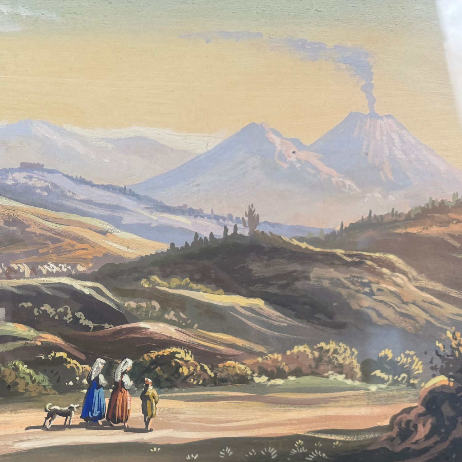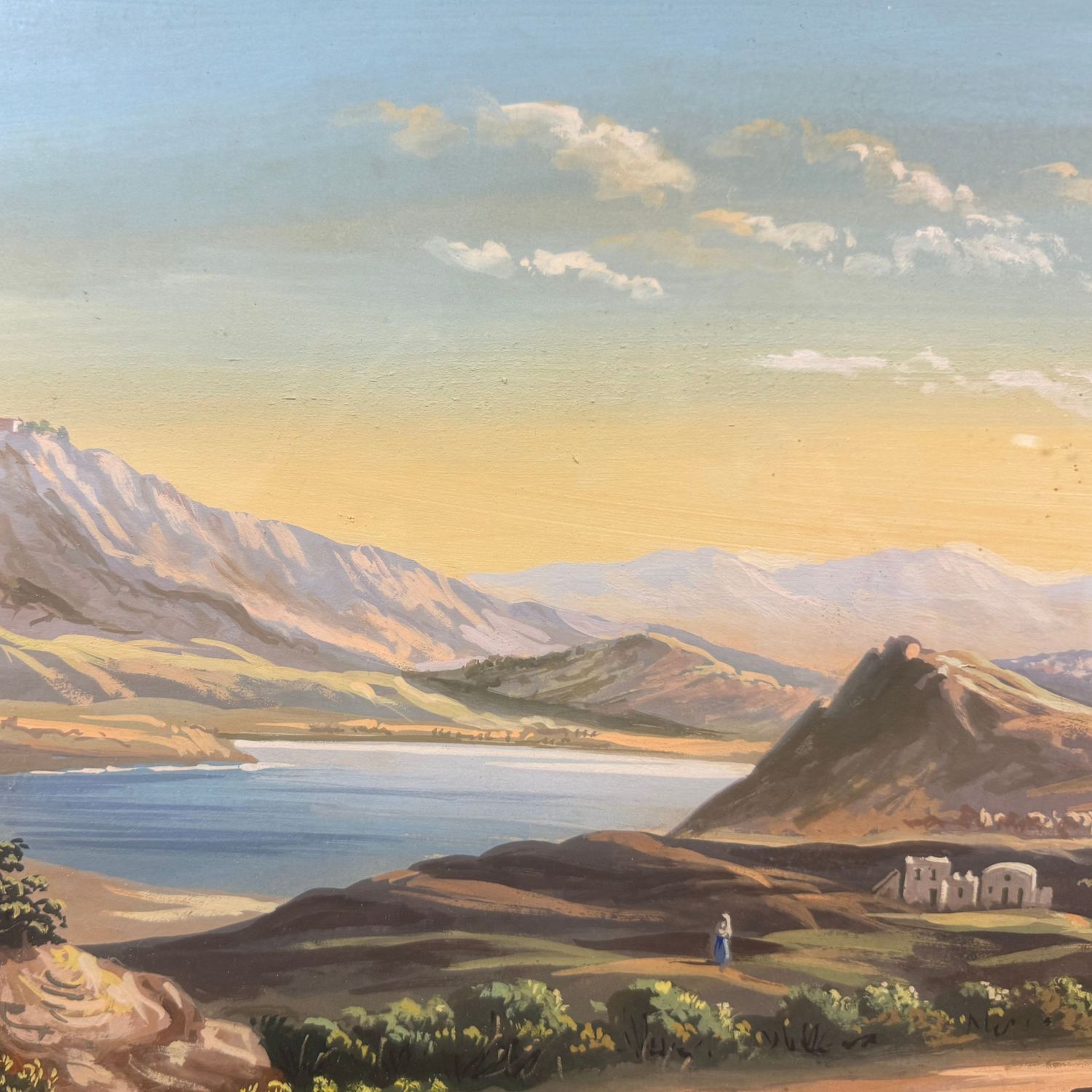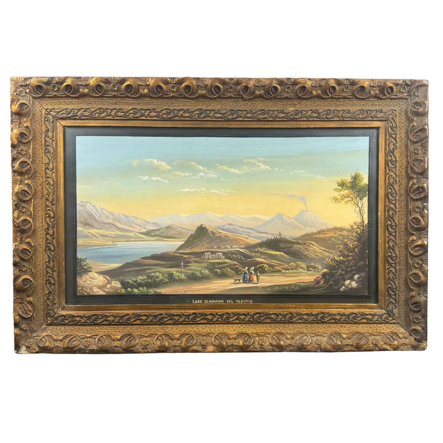 Dipinto guazzo (tempera su carta), periodo XX secolo scuola italiana, raffigurante Lago di Agnano col Vesuvio.