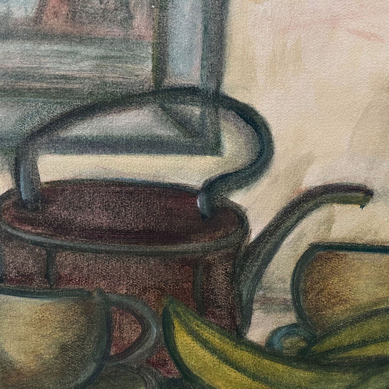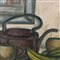 Dipinto olio su Cartoncino attaccato su tela, raffigurante Cocci e frutta