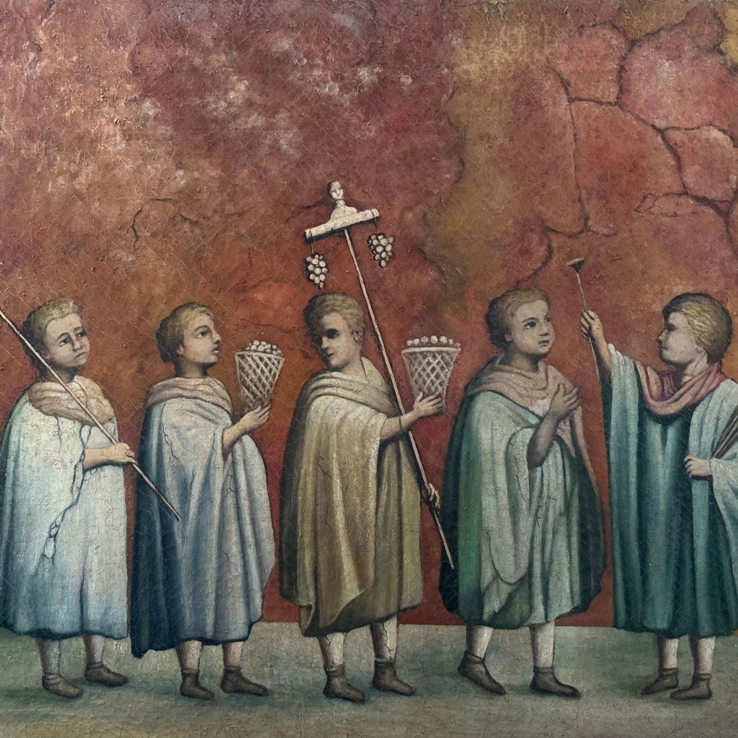Dipinto olio su tela, periodo XIX/XX secolo scuola Italiana raffigurante Affresco Pompeano.
