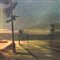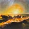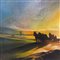 Dipinto olio su tela, periodo XIX/XX secolo scuola Europea, raffigurante Carovana al tramonto.
