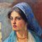 Dipinto olio su tela scuola Italiana periodo XIX secolo, raffigurante Donna coperta da fazzoletto blu.