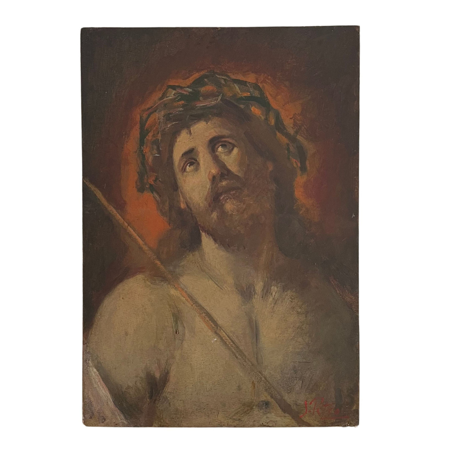 Dipinto olio su pannello, periodo XX secolo scuola Italiana raffigurante Cristo coronato di spine.