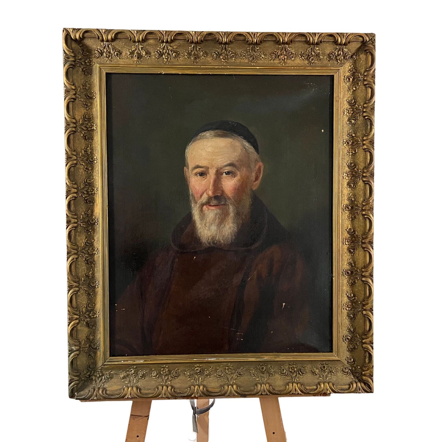 Il frate cappuccino con in capo una berretta scura, rivolge allo spettatore uno sguardo intenso e divertito. I particolari con cui è stato raffigurato fanno pensare ad un ritratto di accademia. Dipinto gradevole sia nella fattura che nelle dimensioni e anche per la presenza di cornice coeva.