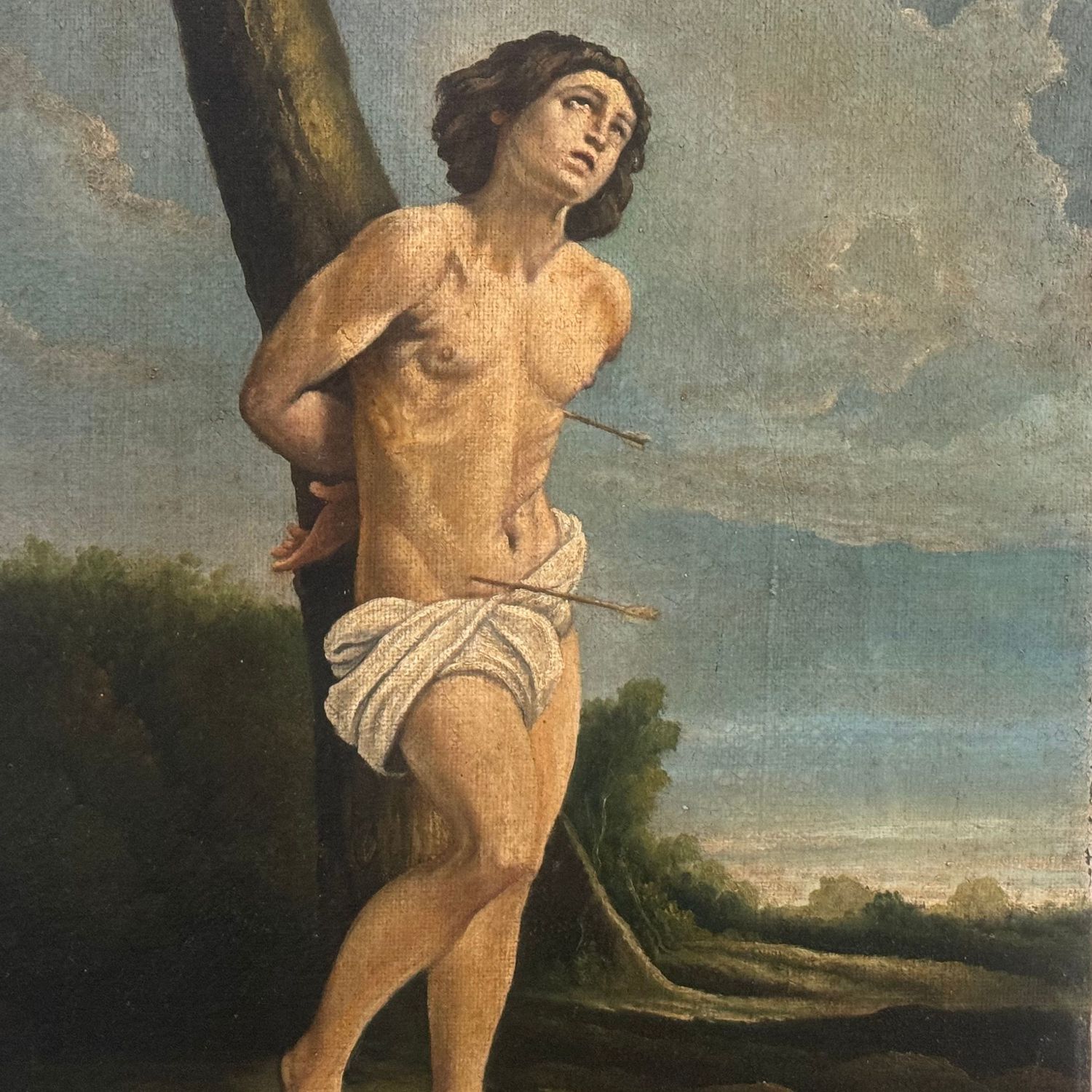 Dipinto olio su tela, periodo XIX/XX secolo scuola Italiana, raffigurante San Sebastiano.