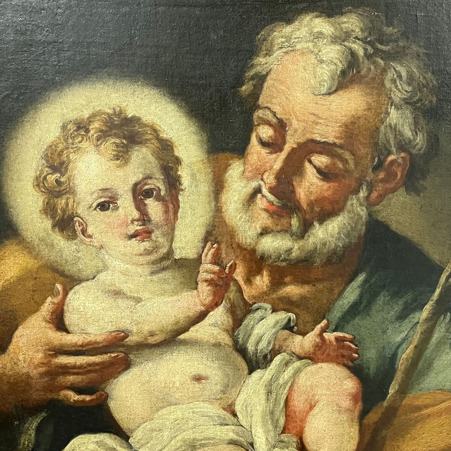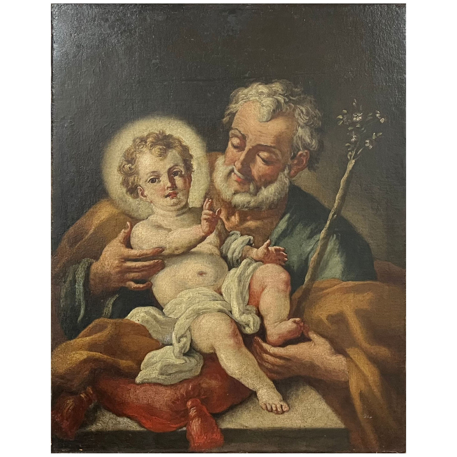Dipinto olio su tela, periodo XVIII/XIX secolo scuola Italiana raffigurante San Giuseppe con Bambino.