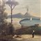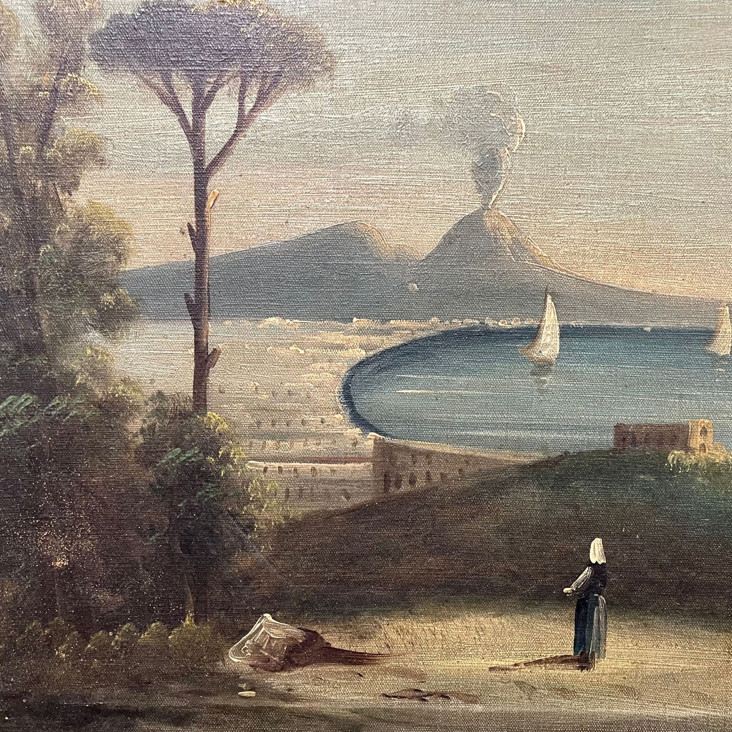 Dipinto olio su tela, periodo XIX/XX secolo, scuola Italiana (Napoli), raffigurante Scorcio di marina napoletana e Vesuvio.