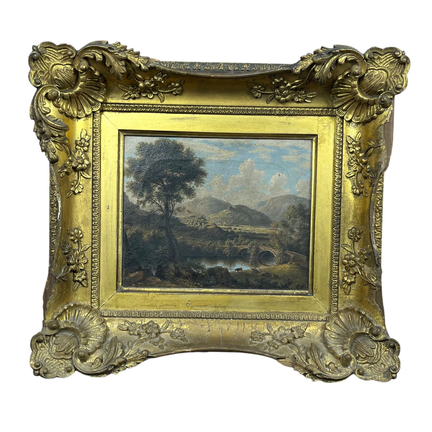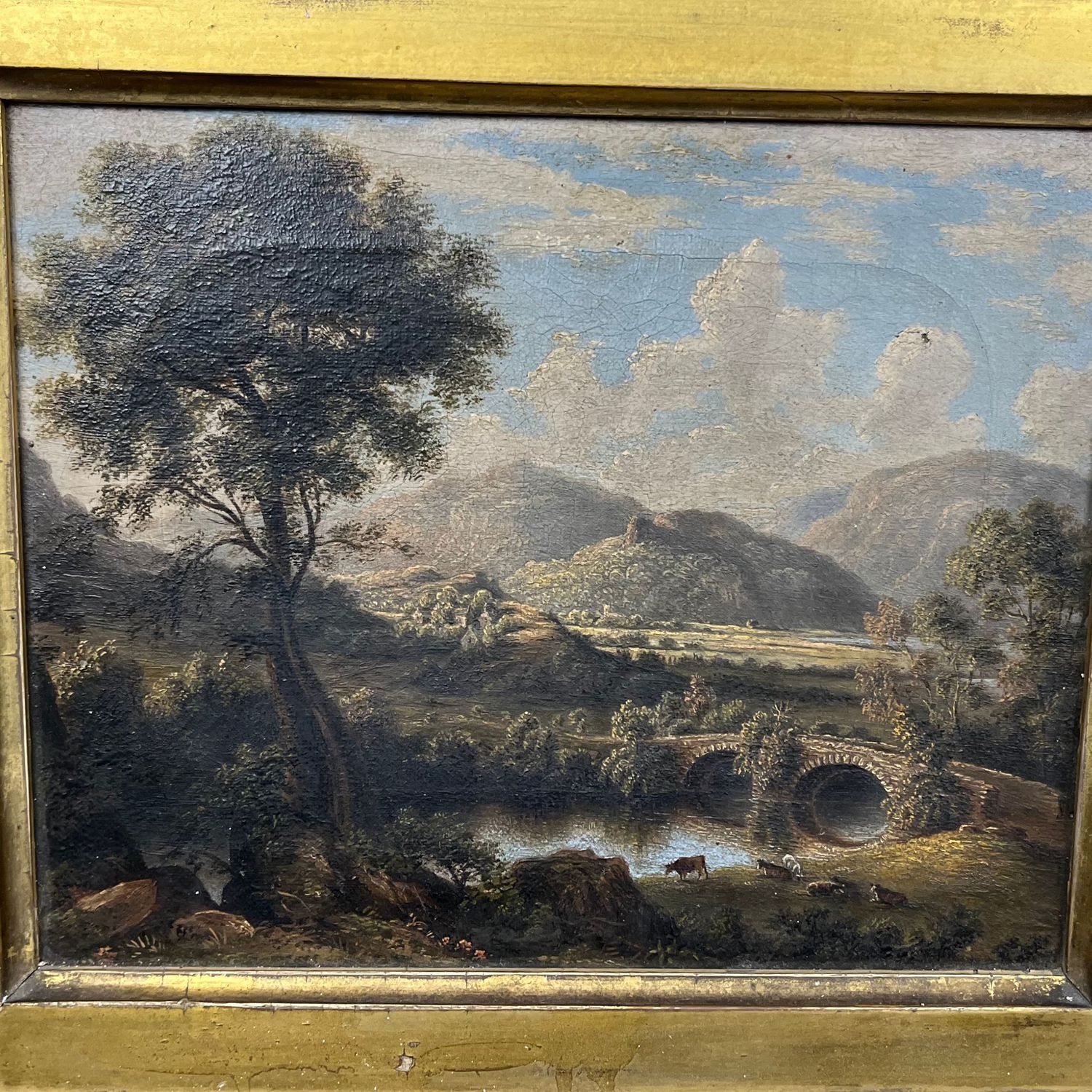 Dipinto olio su tela scuola italiana, periodo XIX secolo, raffigurante Paesaggio con armenti (luogo imprecisato)
