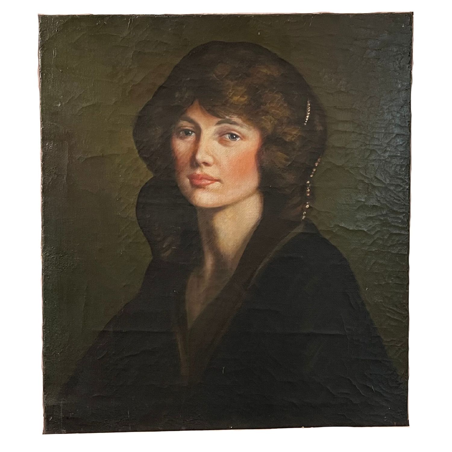 Dipinto olio su tela, scuola Europea periodo XX secolo raffigurante Ritratto di donna copia da George Percy Jacomb-Hood.