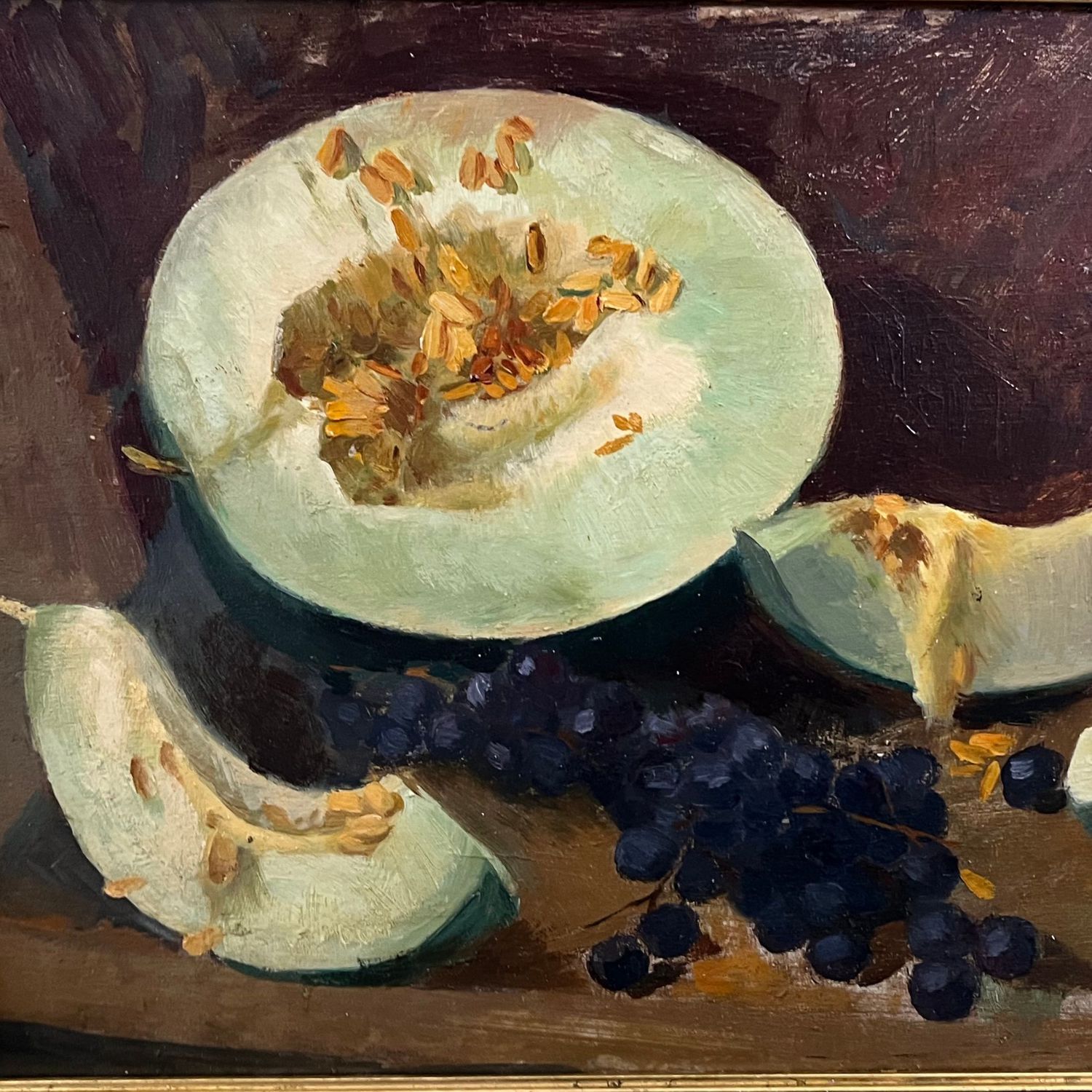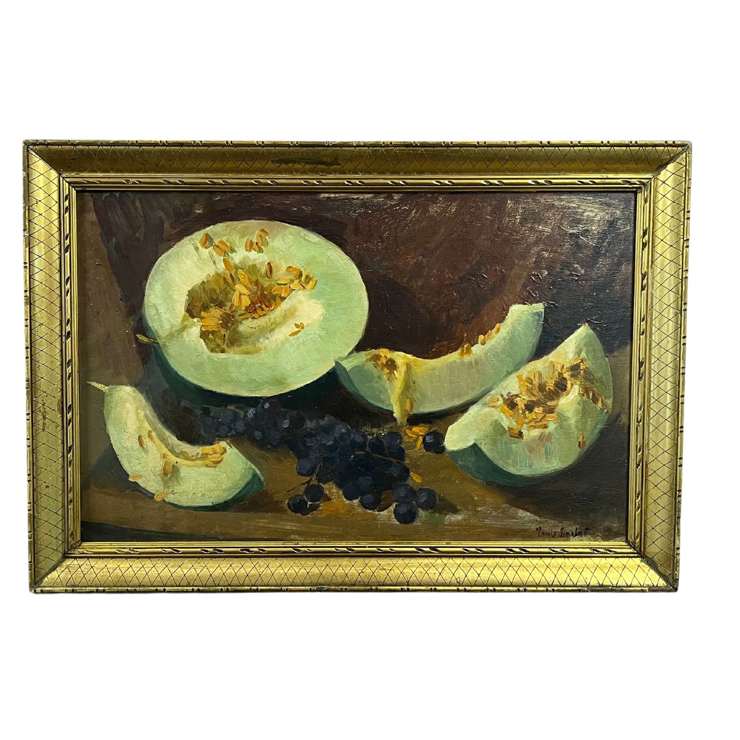 Dipinto olio su pannello, scuola Francese periodo XX secolo raffigurante Frutta.