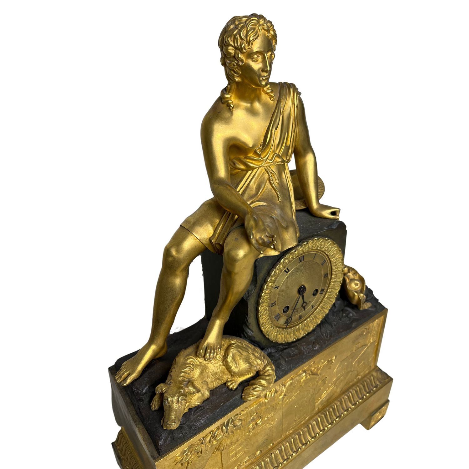 Orologio in parte bronzo dorato al mercurio e in parte satinato, periodo Impero XIX secolo. Quadrante in bronzo dorato.