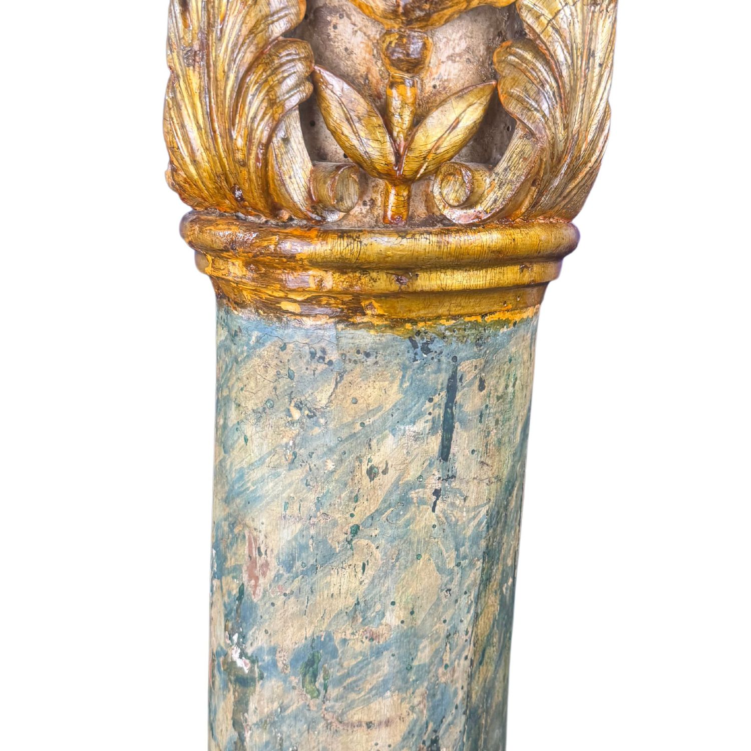 Oggetto decorativo, colonna in legno intagliato con finitura in lacca e oro, periodo XIX secolo.