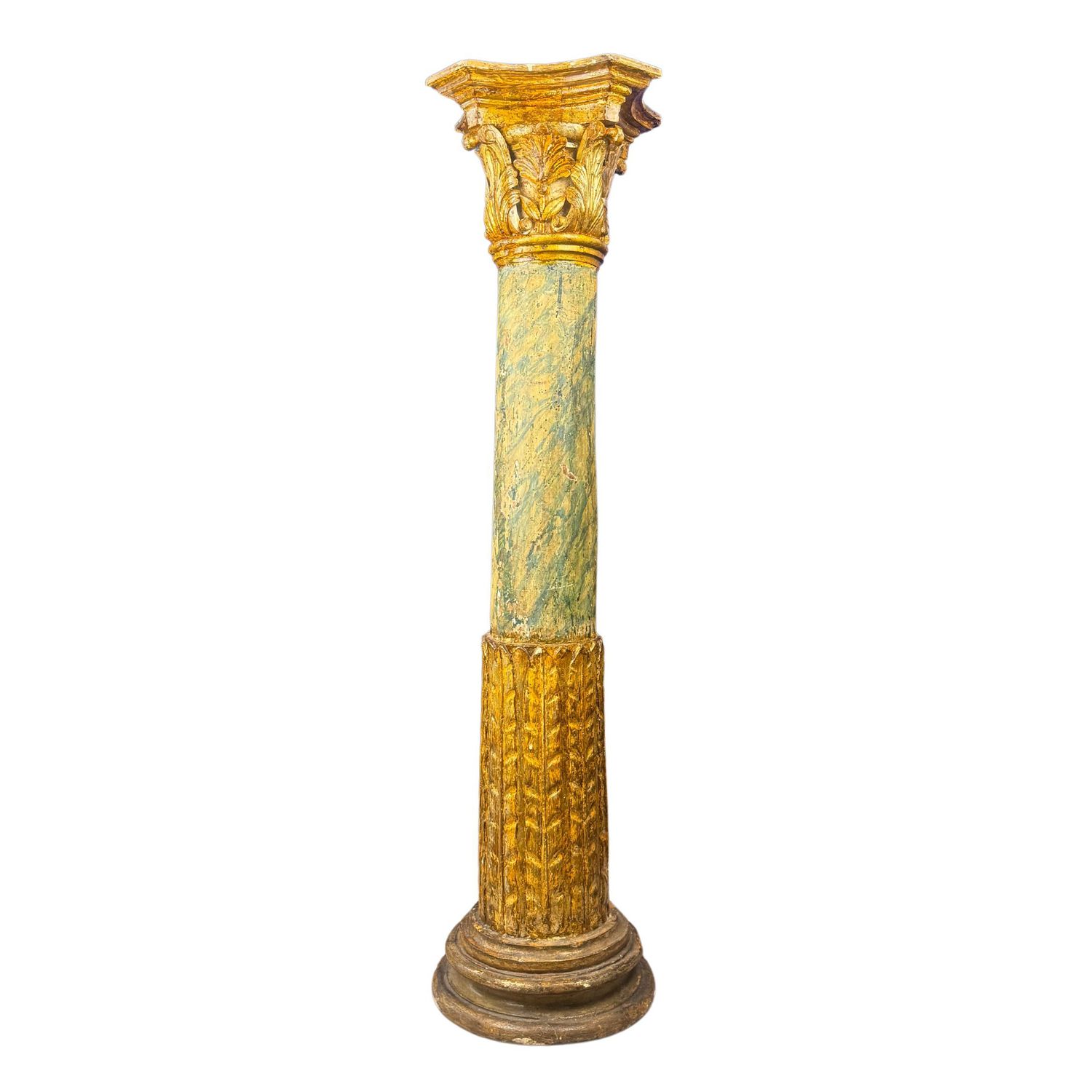 Oggetto decorativo, colonna in legno intagliato con finitura in lacca e oro,...