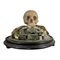 Teschio in scagliola sotto campana di vetro con base in legno. Dimensioni:...