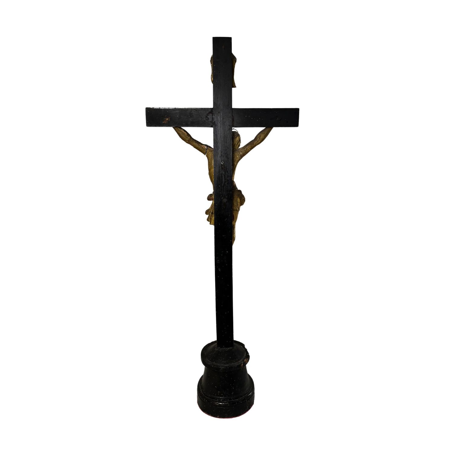 Scultura in legno dorato raffigurante Cristo in croce. Periodo XVIII secolo...
